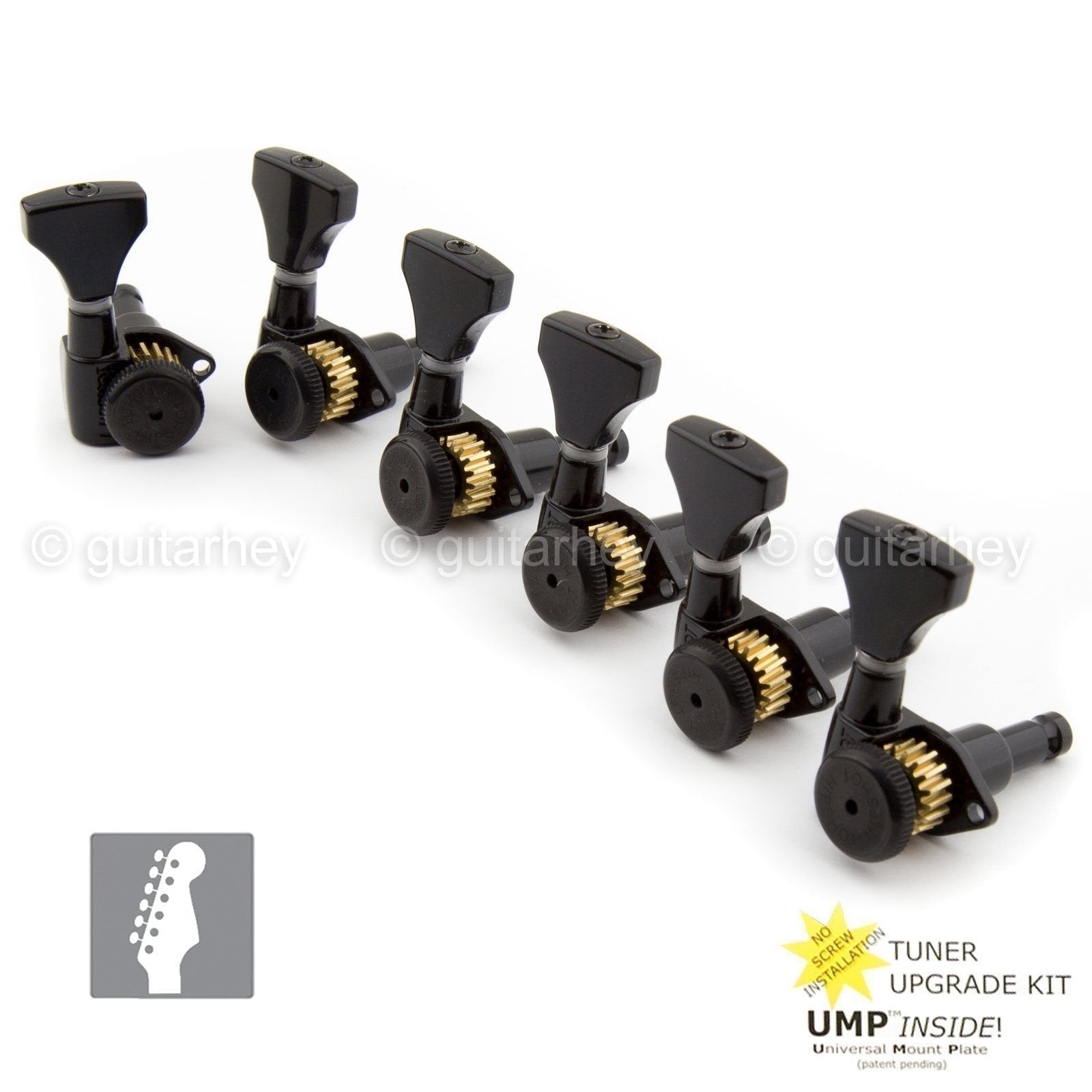 Upgrade your tuners and improve the tuning accuracy and stability with Hipshot's Tuner Upgrade Kit. With the patent pending UMP™(Universal Mount Plate) included free in this kit, tuners will install without drilling or screwing your headstock.