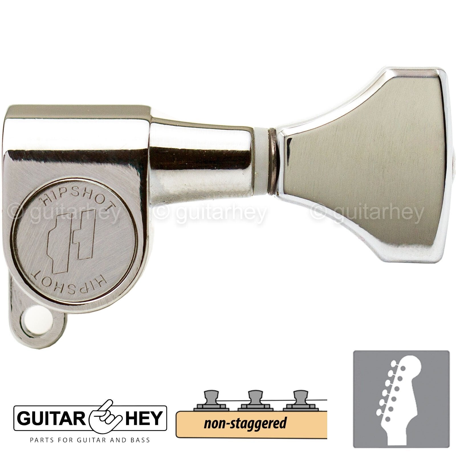 Hipshot Mini Tuners Classic 6-In-Line Non-Staggered Enclosed HS Buttons - NICKEL