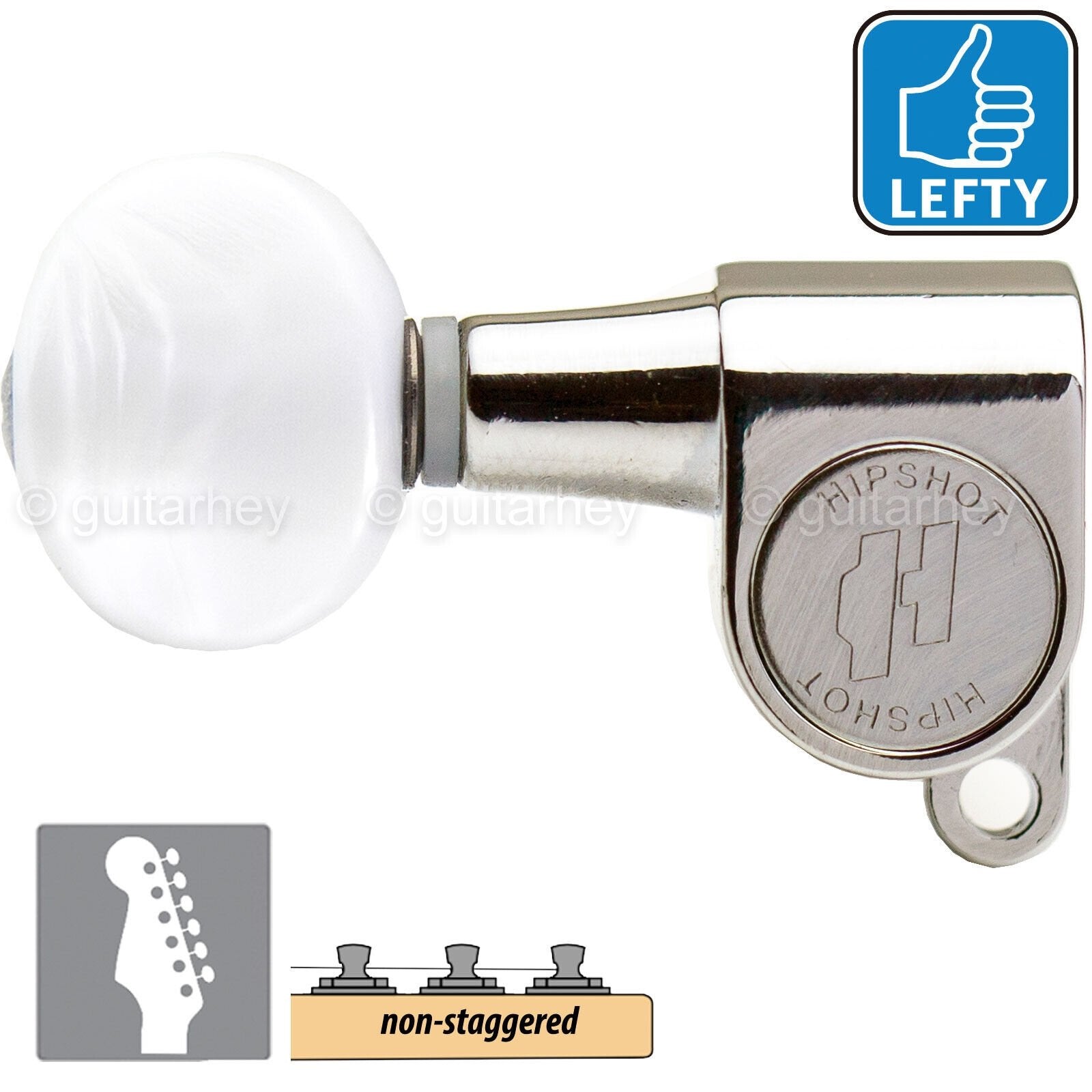 Hipshot Mini Tuners Set 6-In-Line Non-Staggered OVAL PEARL Buttons LEFTY, NICKEL