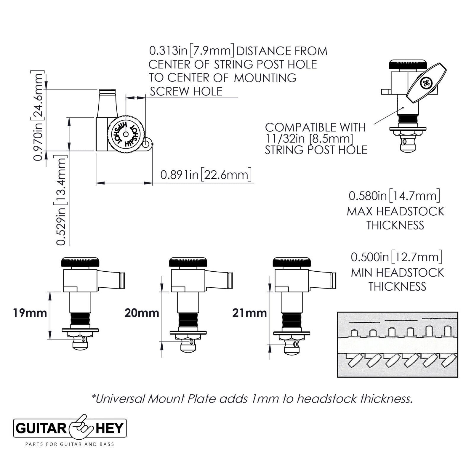 - Included UMP (Universal Mount Plate) for 6 Inline headstocks. No drilling or special tools required