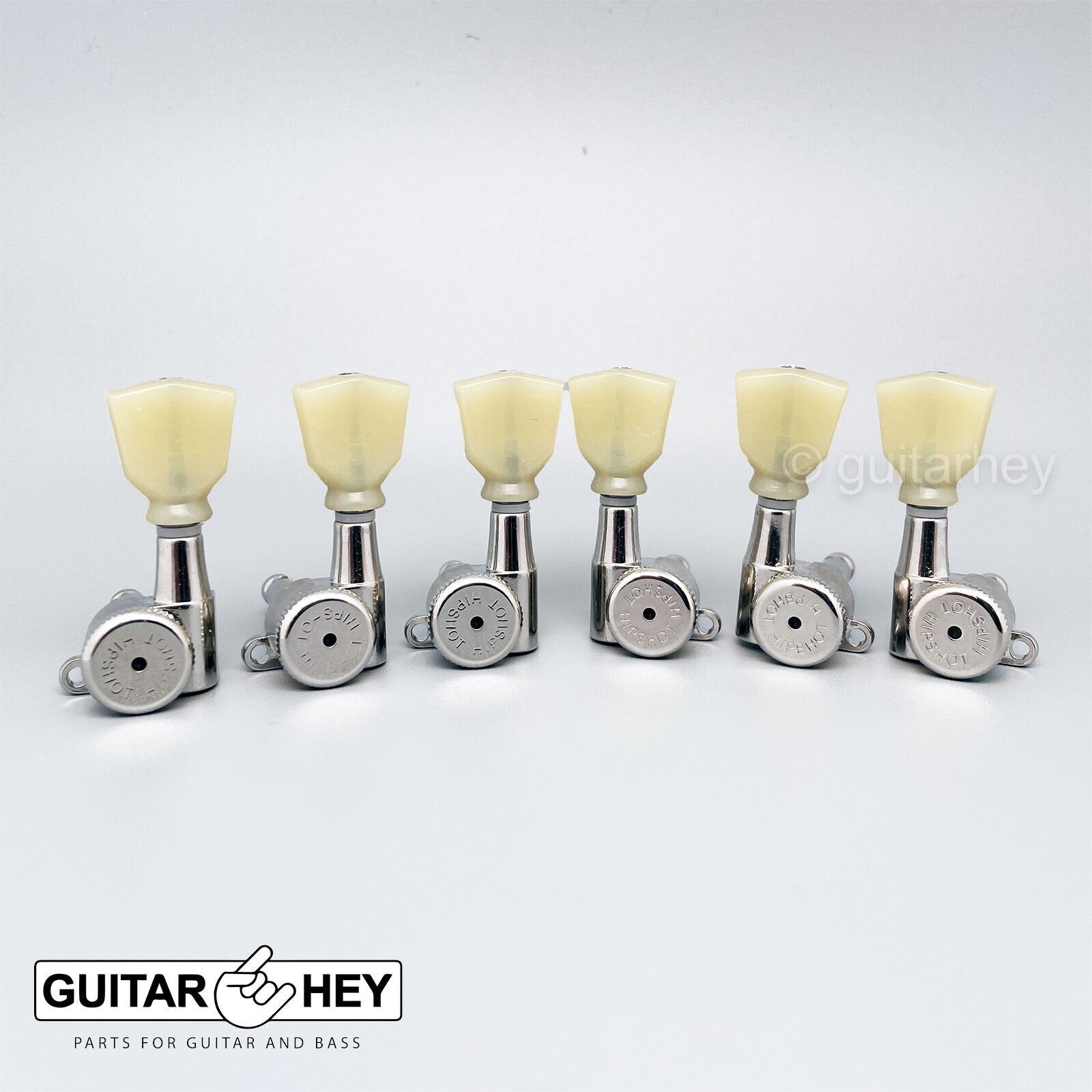 Hipshot Vintage L3+R3 LOCKING Mini Tuners Large TULIP Plastic Buttons 3x3 CHROME