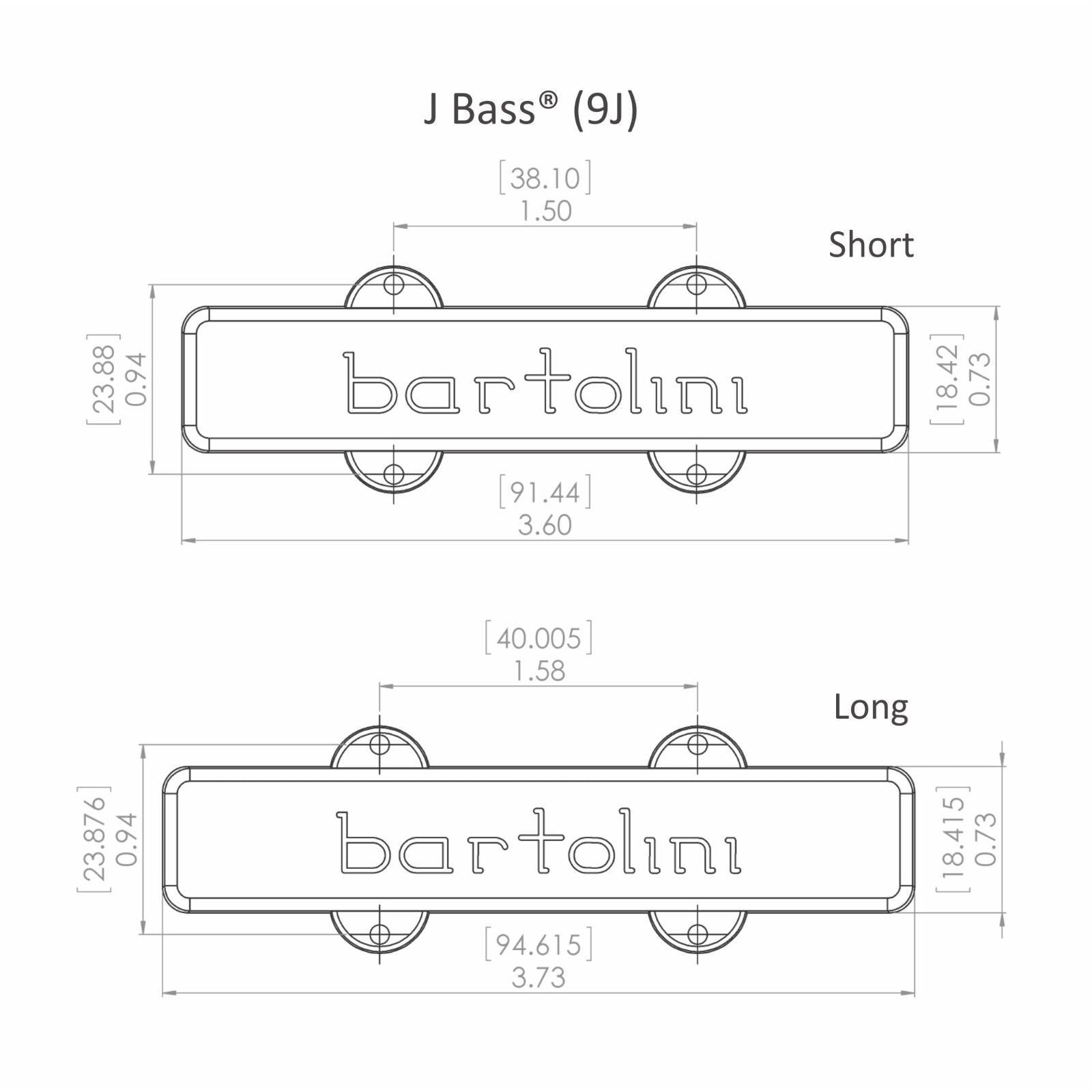 The lengths of the neck and bridge pickups in the original  J-basses are not equal. The neck pickup is 3-5/8? long which is slightly shorter than the bridge pickup which is 3-3/4? long. Some modern designs, however, use  two ‘long’ bridge-length pickups. In this configuration it is important to use the “LN” (long neck) pickup that is specifically designed to work in this position (do not use a bridge pickup in the neck position). Some (very few) use two ‘short’ neck length pickups. Please check the physical size of the pickups you want to replace to make sure the replacements fit properly.