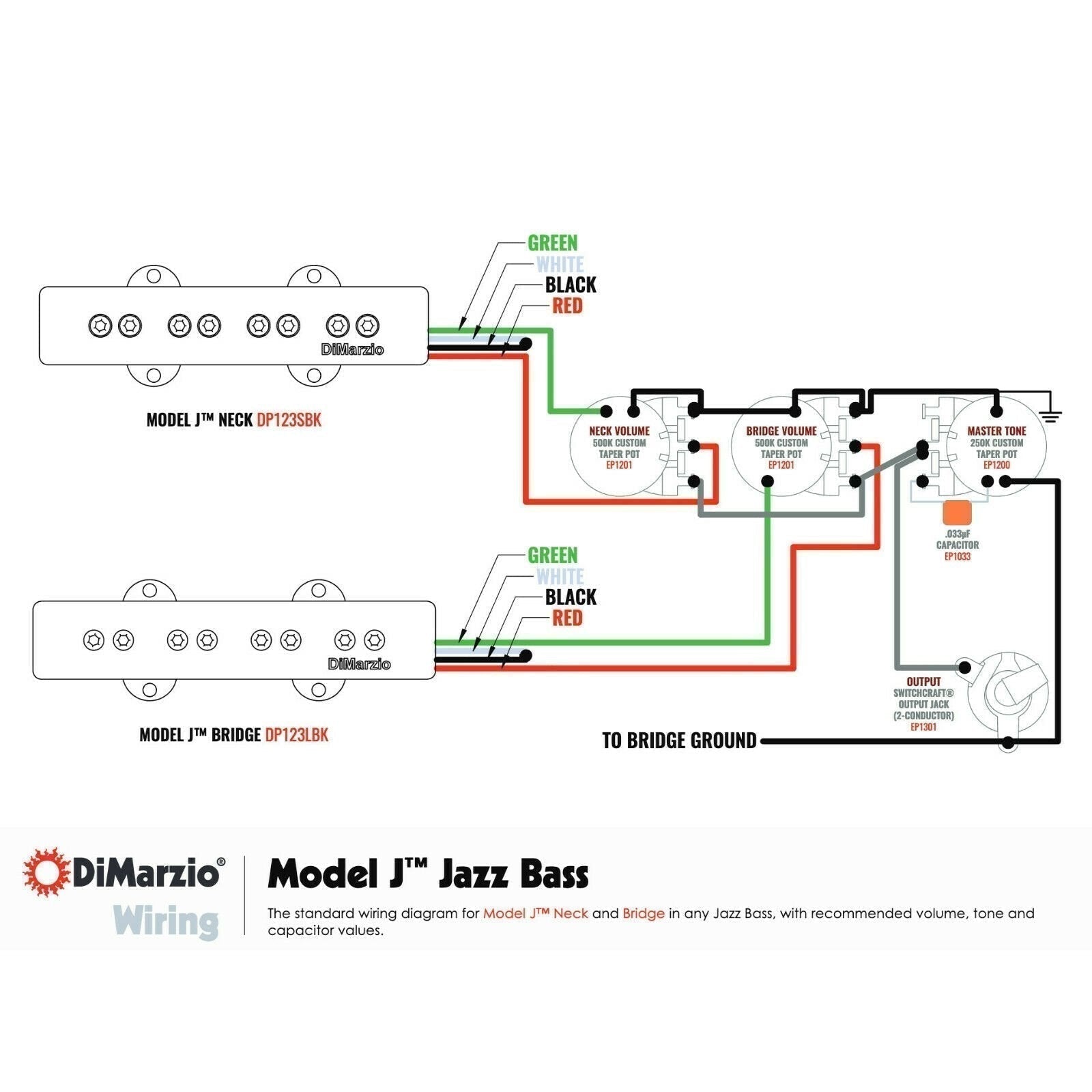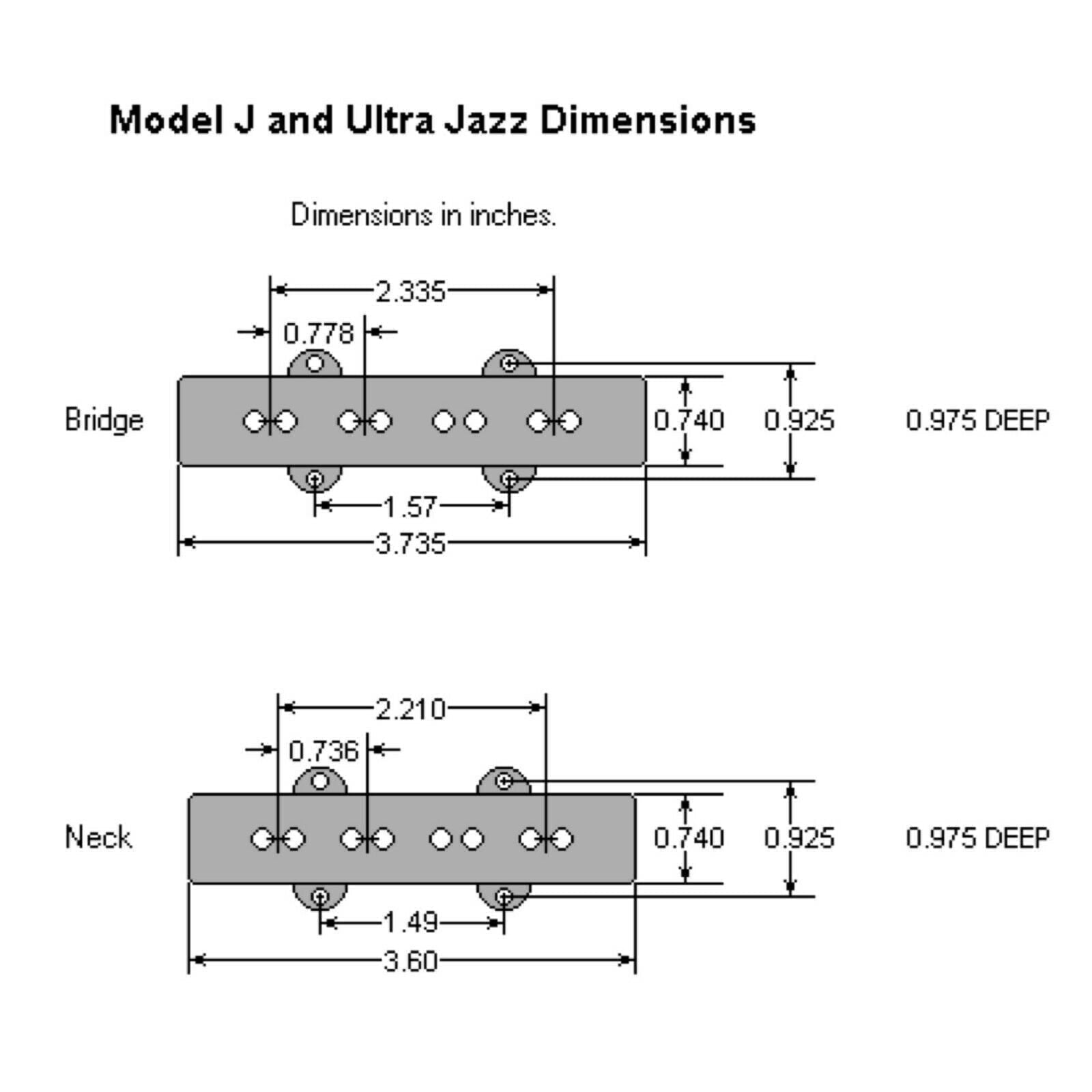 - Recommended For Neck and bridge positions. The DiMarzio Model J was designed to fit the original Fender Jazz Bass, which has neck and bridge pickup cavities of two different sizes. Some current basses use the same length pickup in both positions. The DiMarzio Model J set, DP123, consists of two pickups of different lengths, with the neck pickup shorter than the bridge pickup. The pickups are also available individually as DP123S (short) and DP123L (long) if your bass requires either one size pickup or the other. Please refer to the dimensions link for the correct choice for your bass. Wiring 4 Conductor