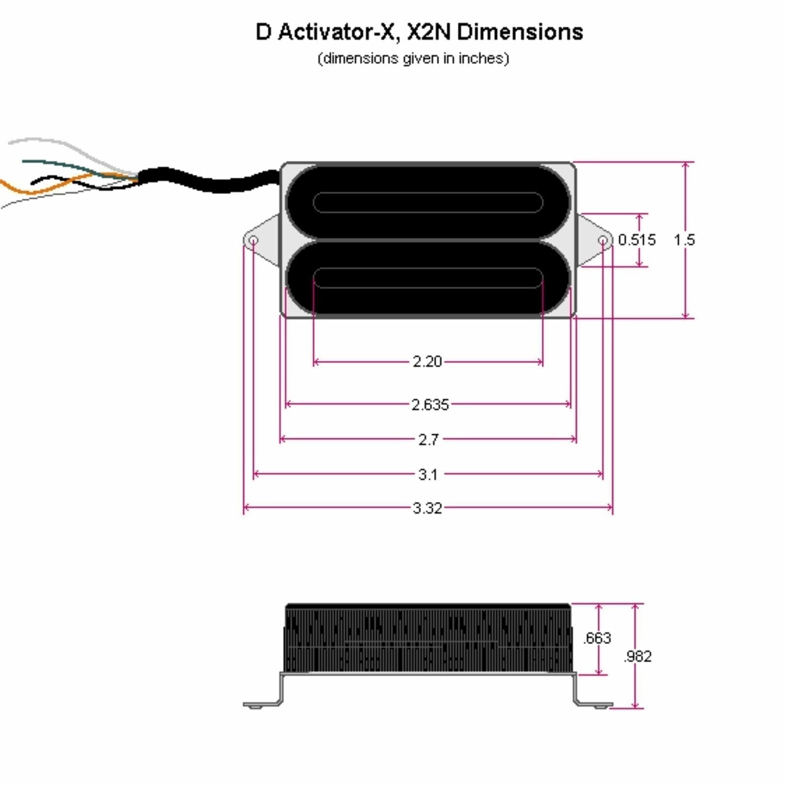 The D Activator-X bridge model uses the same bar pole pieces and magnet structure as the X2N®, but it's a very different pickup in other ways. Output voltage is slightly lower than the X2N®, and the tuning of the two coils allows the high frequencies to open up while still maintaining very strong lows and mids. The D Activator-X is also very good for clean, bright sounds in split and parallel modes.