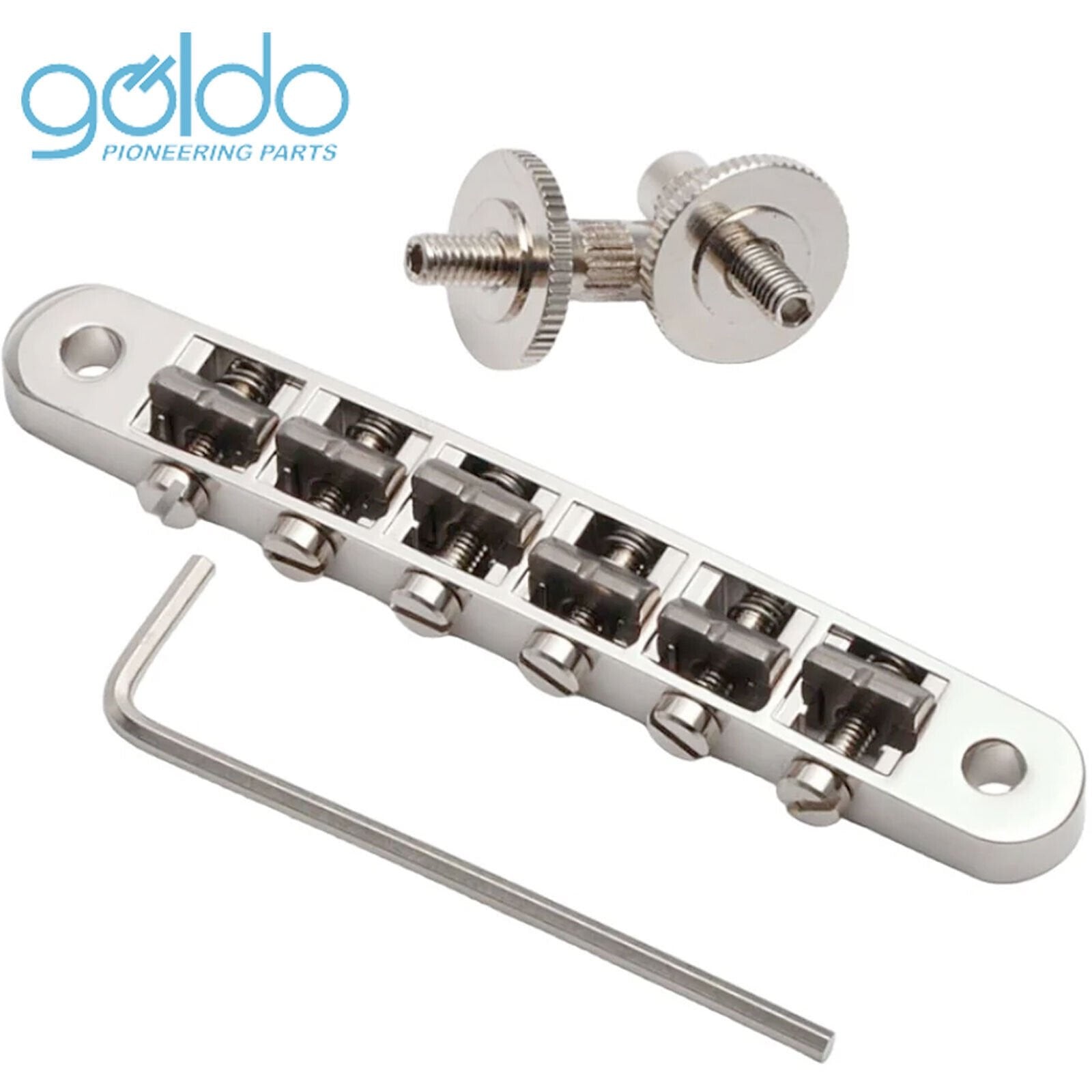 The HWGLN göldo Lowrider Bridge is a nickel-plated tune-a-matic bridge with a lower height for guitars with a flat neck angle. It stands on classic M4 studs and has a height of just 9.7mm.