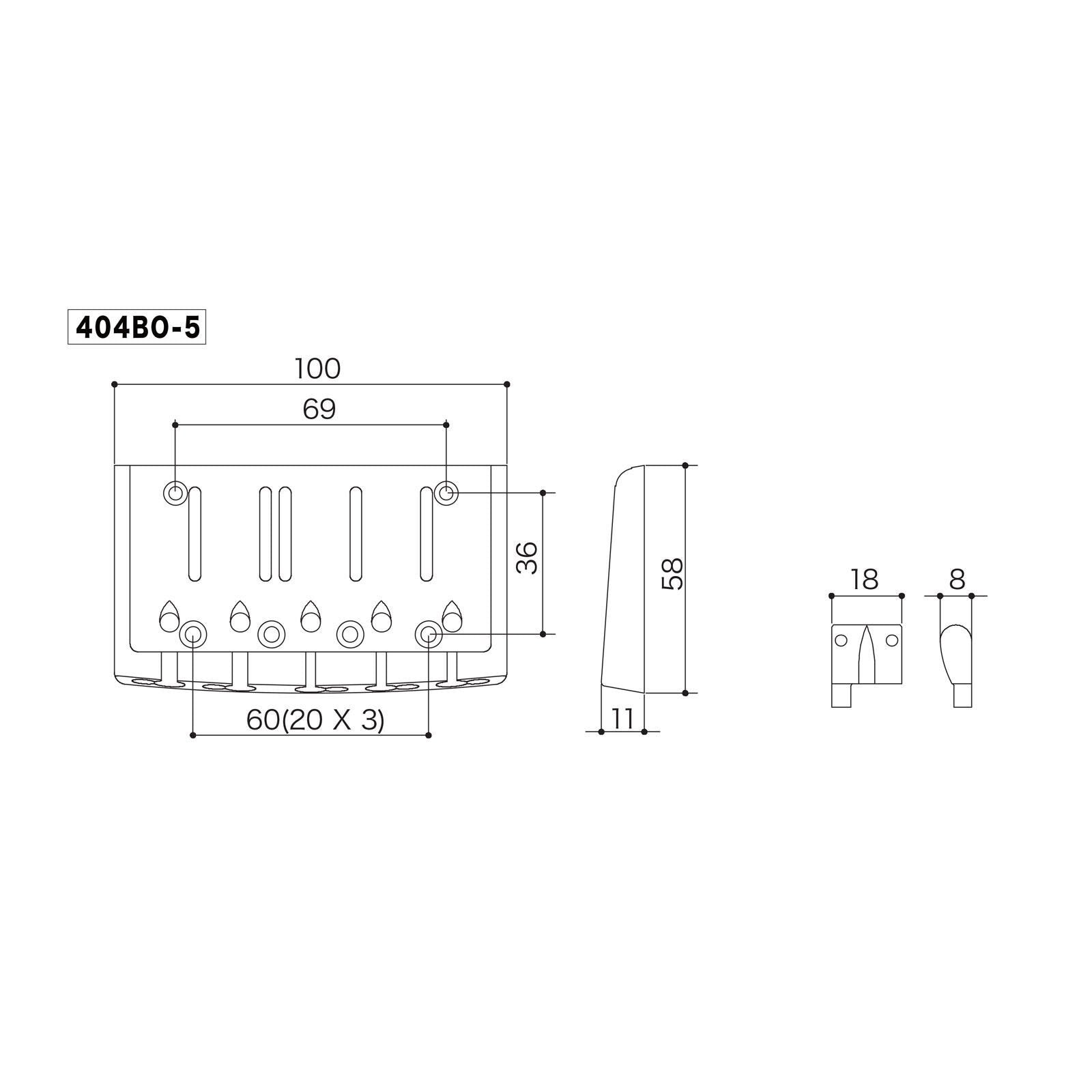 The GOTOH 404 series of bass bridges use a hard zinc baseplate that is reputed for its tonal qualities and sonorous tone. The brass saddles along with the hard zinc baseplate will produce a very balanced tone of highs, mids, and lows.
