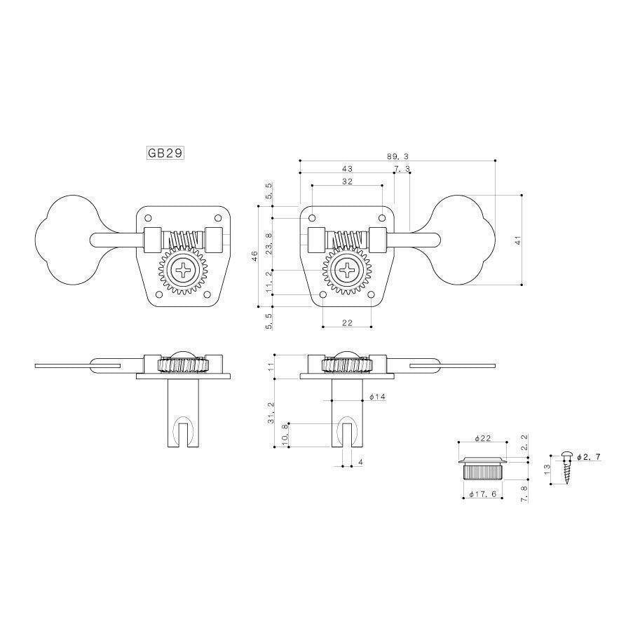 Set of 4 Gotoh GB29 4 in Line Bass Tuning Keys. High quality 26:1 gear ratio bass tuners with smooth, precise operation.