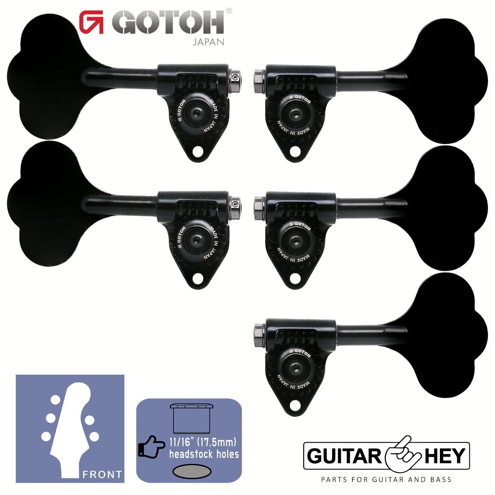 NEW Gotoh GBU510C-12 Bass 5-String L3+R2 11/16" Tuners Clover Key 3x2 - BLACK