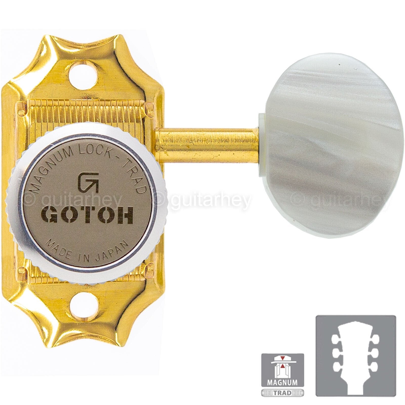 NEW Gotoh SD90-P5W MGT MAGNUM LOCKING Tuners L3+R3 PEARLOID Buttons 3x3 - GOLD
