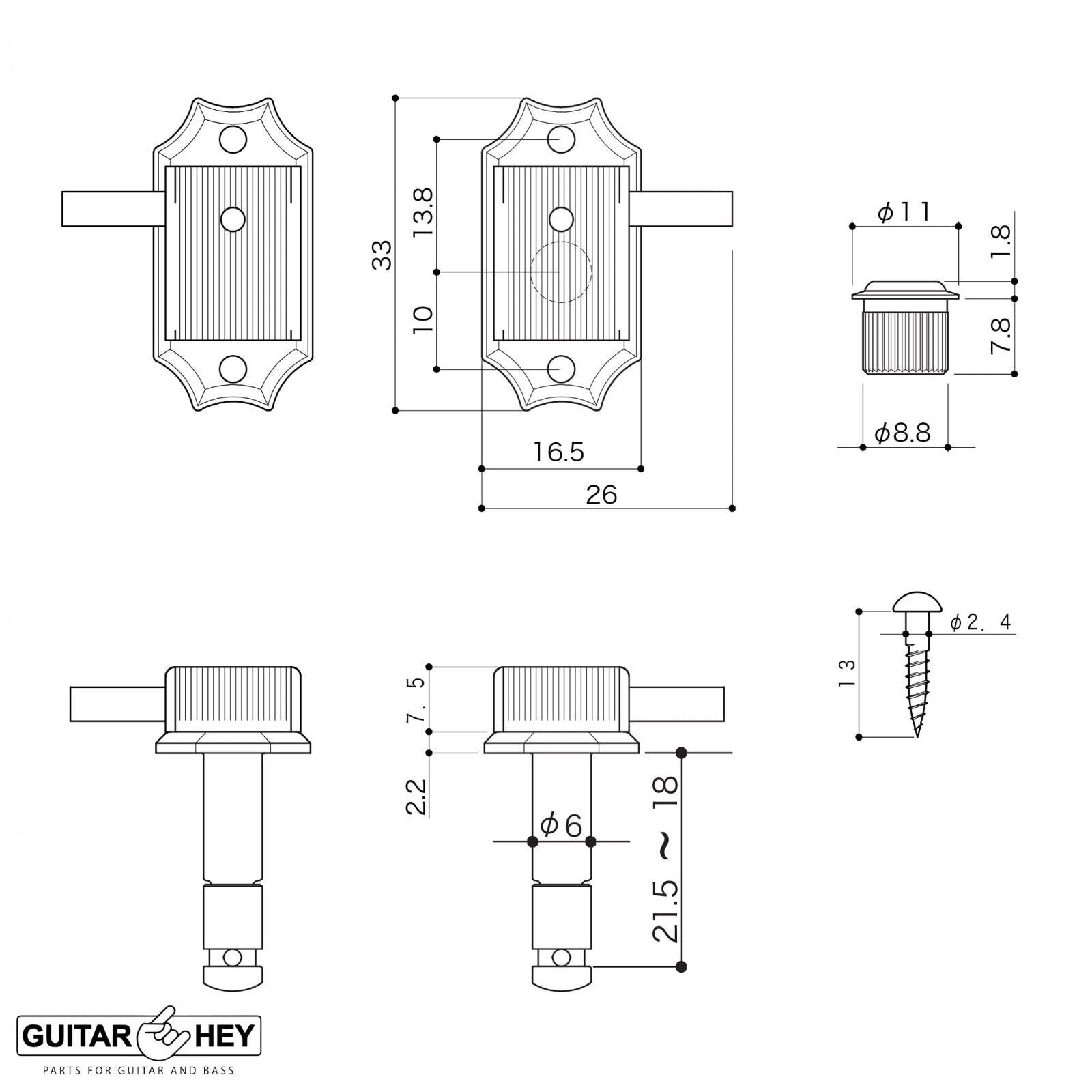 - Vintage style tuners retrofit guitars with 8.8mm headstock holes