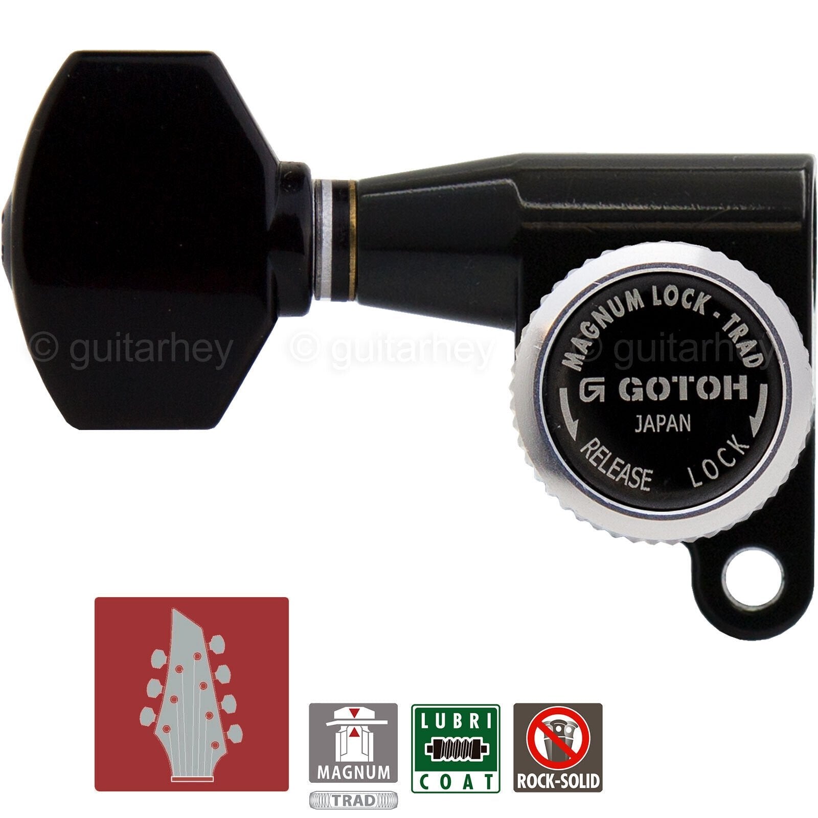 NEW Gotoh SG360-07 MGT Locking Tuners 7-String Small Keys L3+R4 Set 3x4 - BLACK