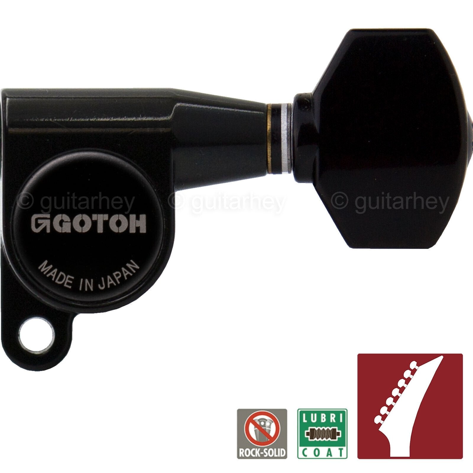 The SG360 tuning machines feature the accuracy and reliability Gotoh is famous for. They features a 14:1 gear ratio for precise, accurate tuning, and a die-cast enclosure that is permanently sealed and lubricated for years of smooth operation.