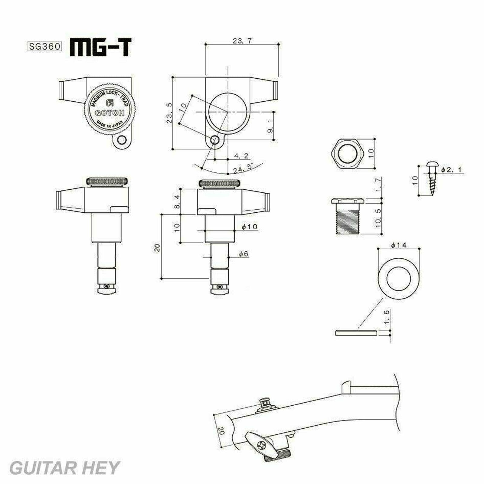 NEW Gotoh SG360-EN07 MGT Locking Tuners L3+R3 Small EBONY Buttons 3x3 - CHROME
