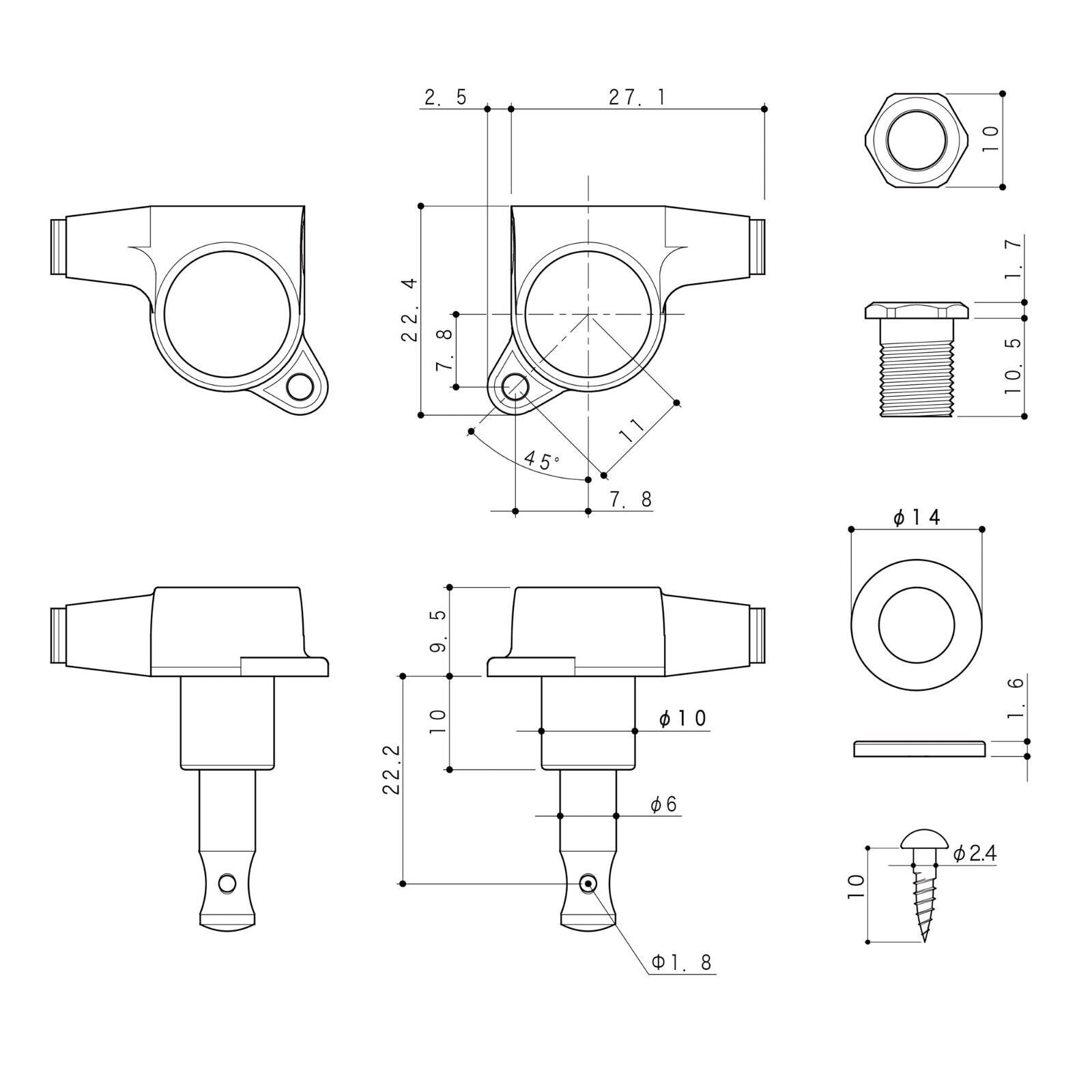 NEW Gotoh SG381-07 L4+R3 7-String Tuners w/ Small Buttons Set 4x3 - GOLD