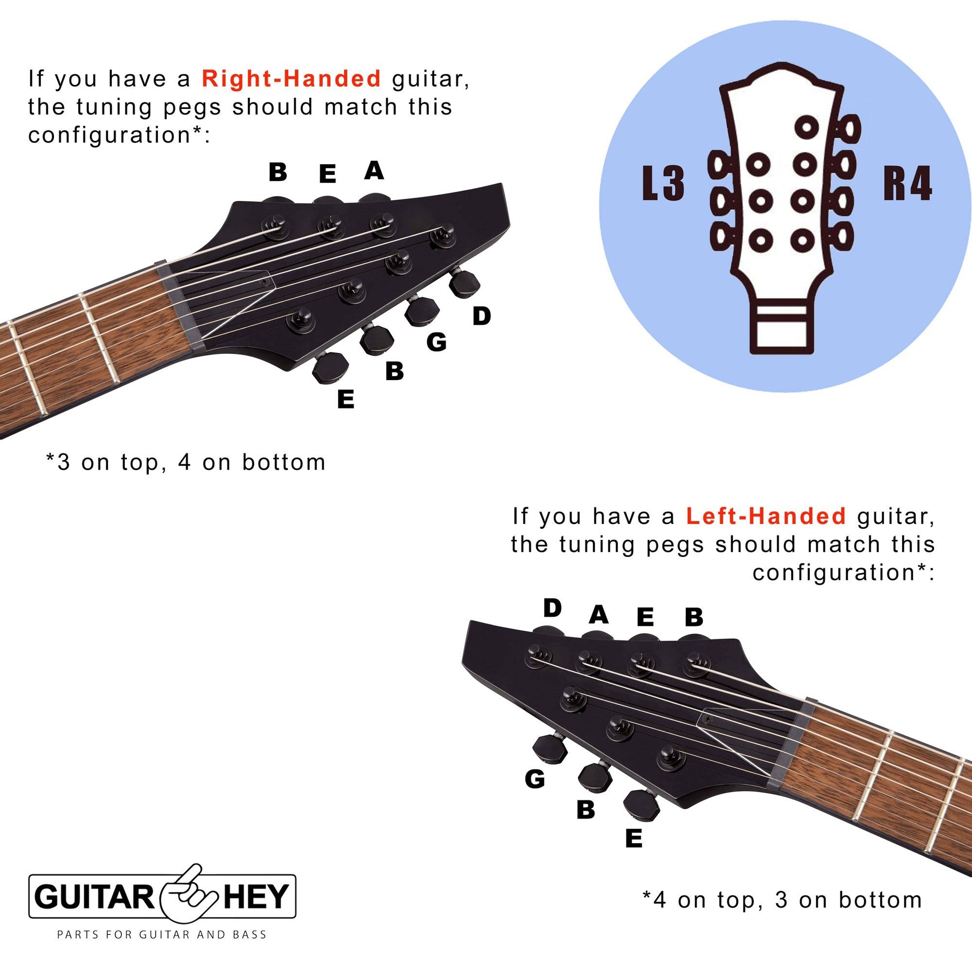 NEW Gotoh SG381-04 7-String SET L3+R4 Set Tuners w/ Keystone Buttons 3x4 - BLACK