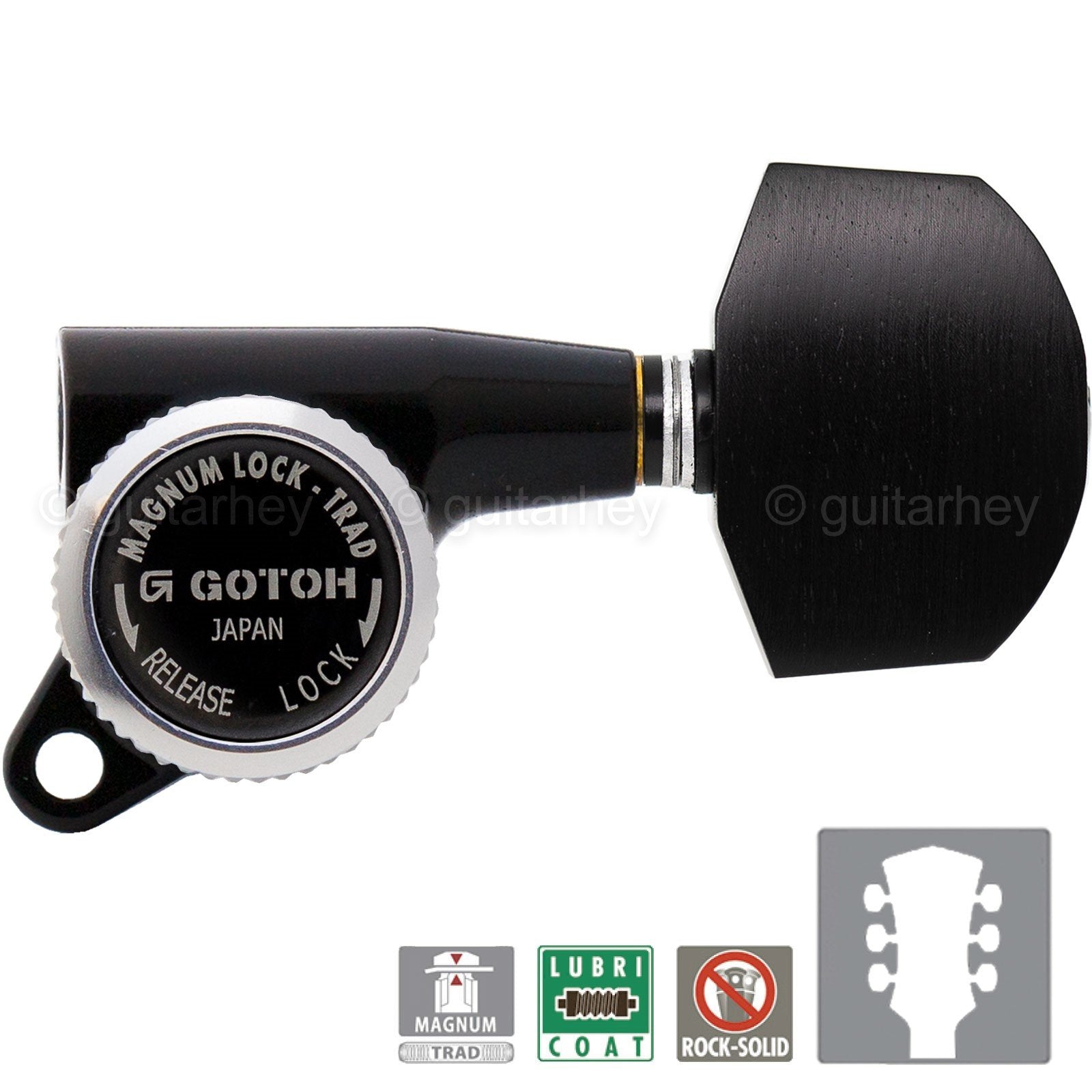 NEW Gotoh SG381-EN01 MGT Locking Tuners L3+R3 w/ Large EBONY Buttons 3x3 - BLACK