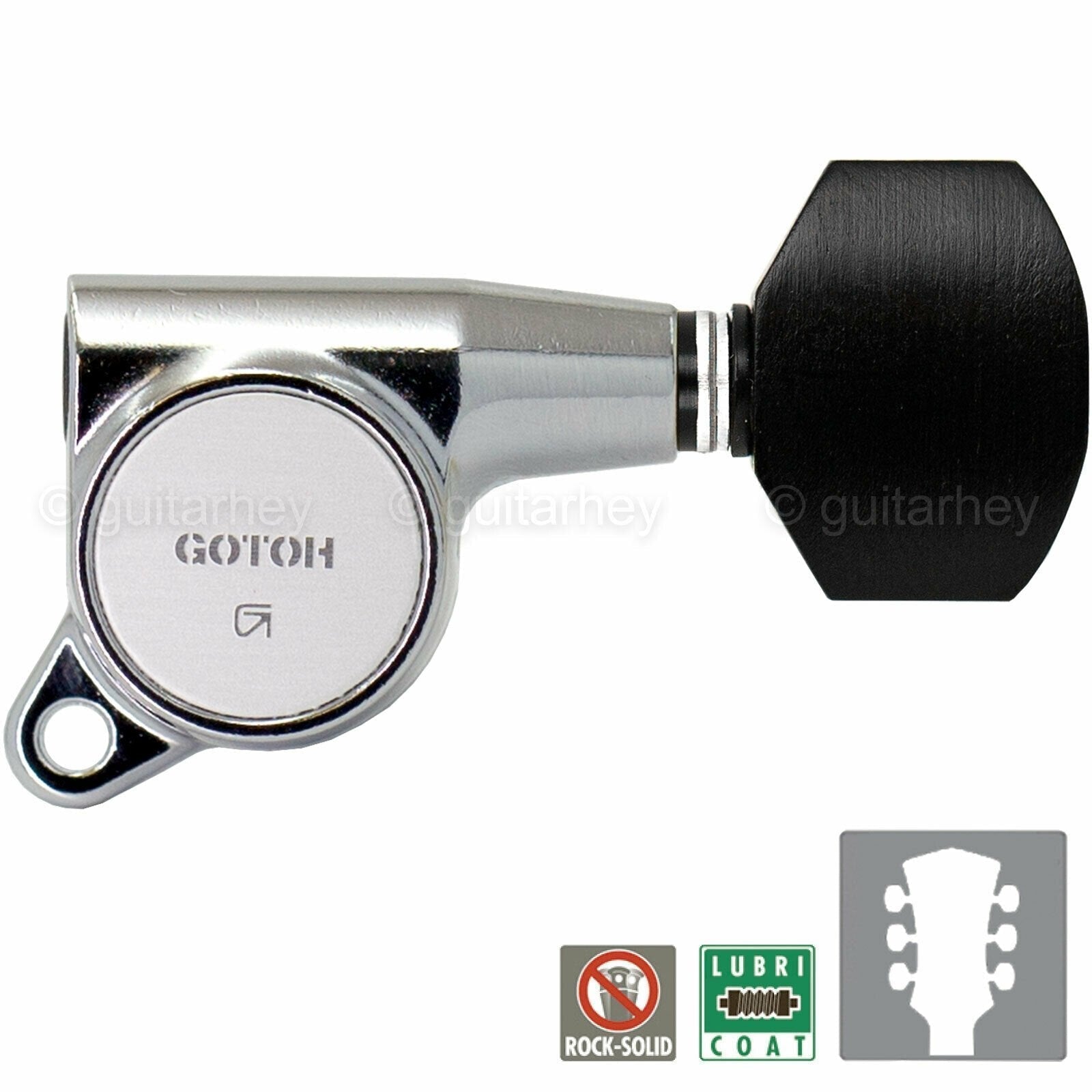 NEW Gotoh SG381-EN07 Guitar Tuning L3+R3 w/ Small EBONY Buttons Set 3x3 - CHROME