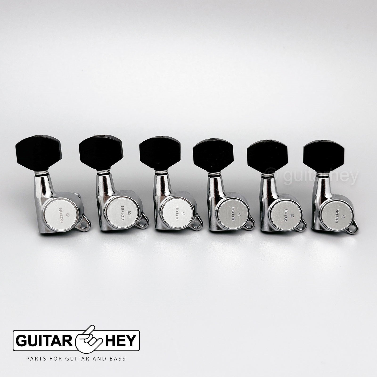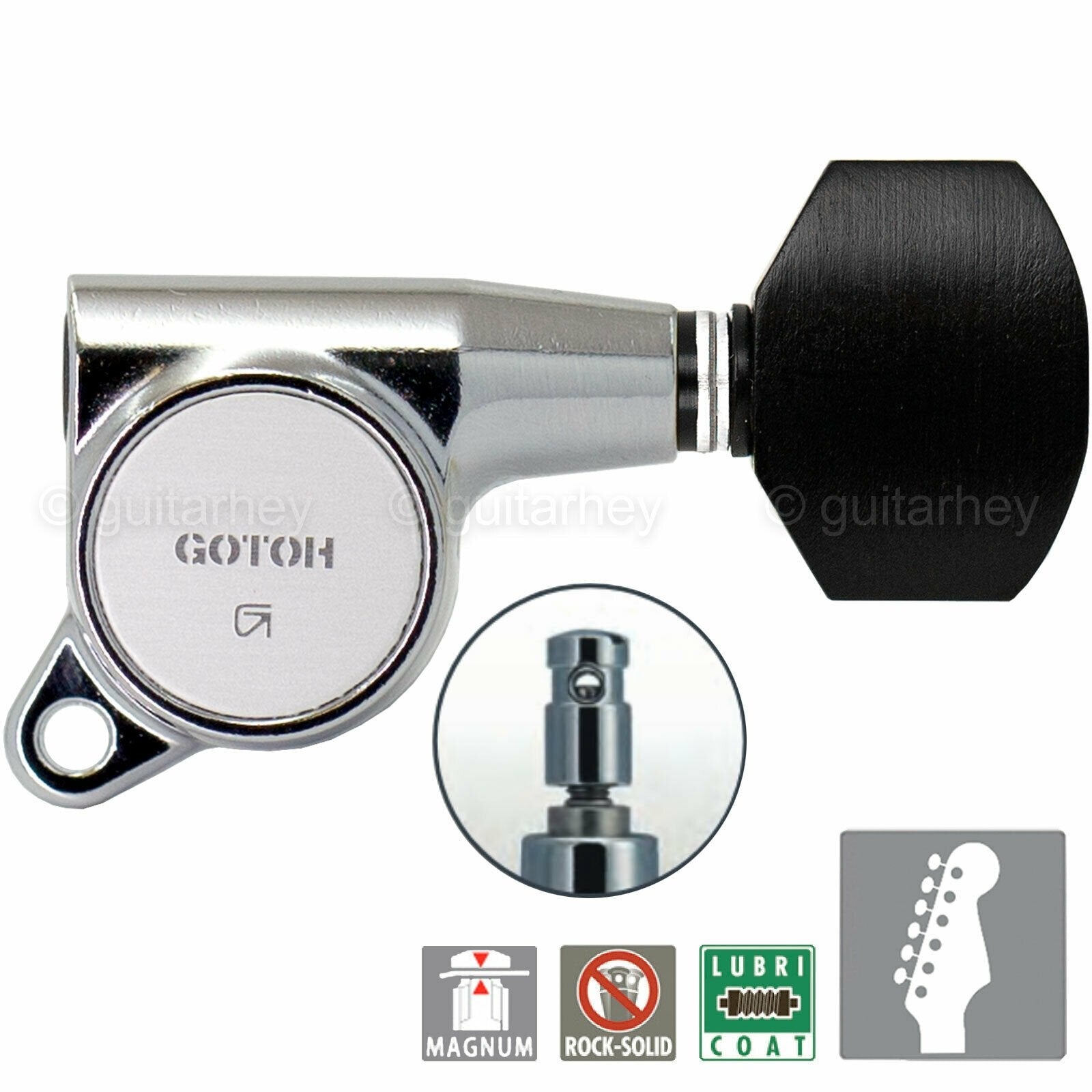 NEW Gotoh SG381-EN07 MG Locking Tuners 6-In-Line Keys w/ EBONY Buttons - CHROME