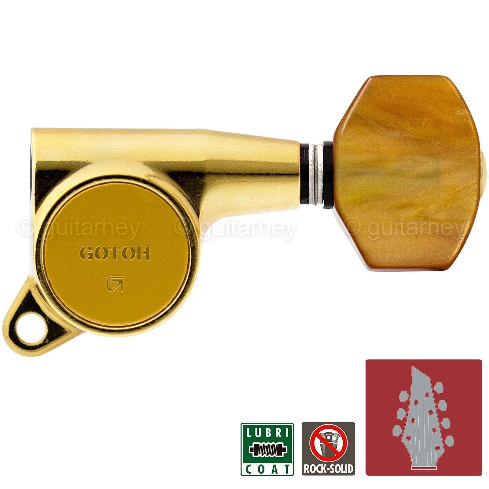 NEW Gotoh SG381-P7 L3+R4 7-String Tuners w/ AMBER Buttons Set 3X4 - GOLD