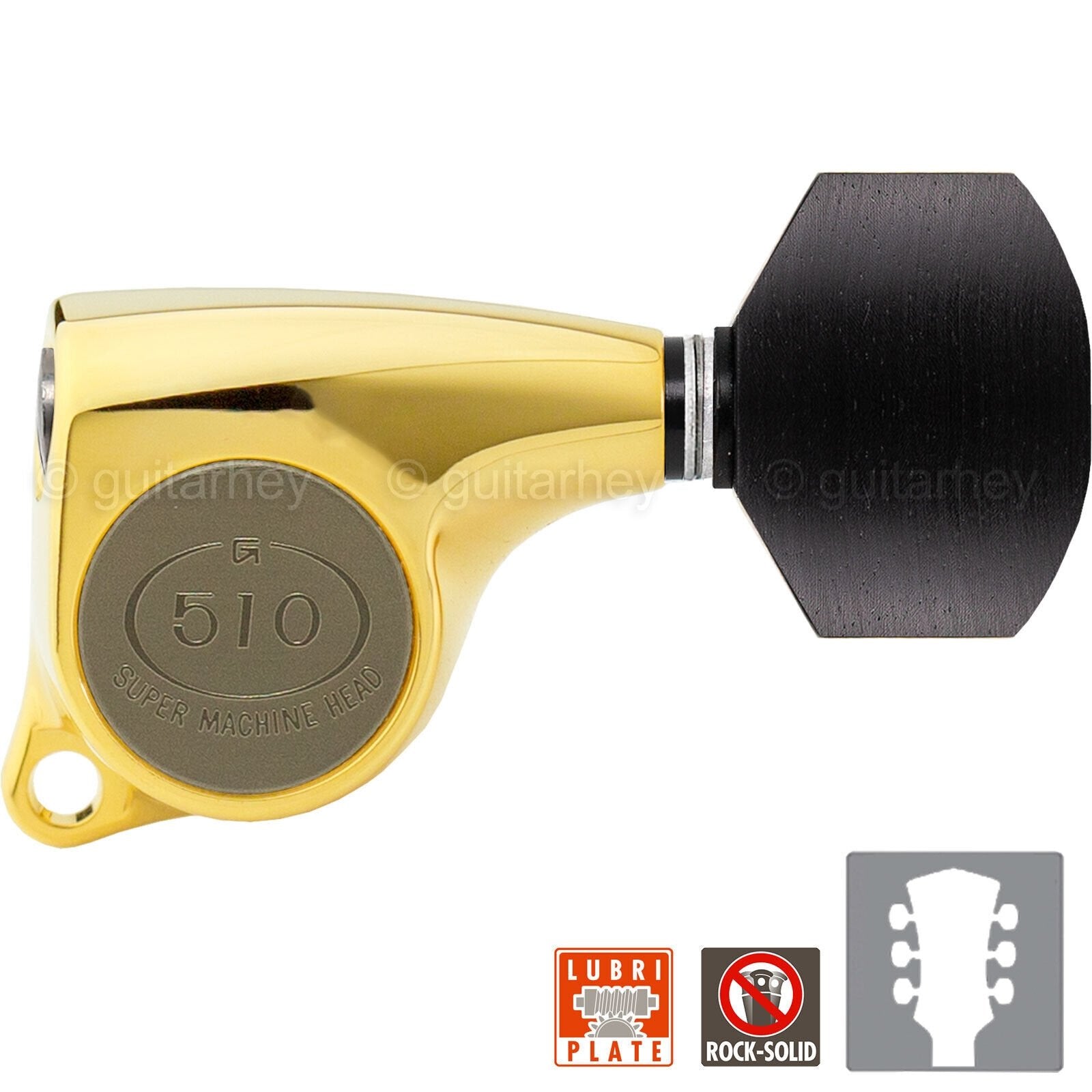 The SG510 series has evolved through improvement without compromise at any stage and come equipped with a considerable application of high-technology as standard. With the improvement of precision fitting gears, marvelous touch on playing—they have gained a considerable reputation and are trusted as the No.1 machine head by many musicians all over the world.