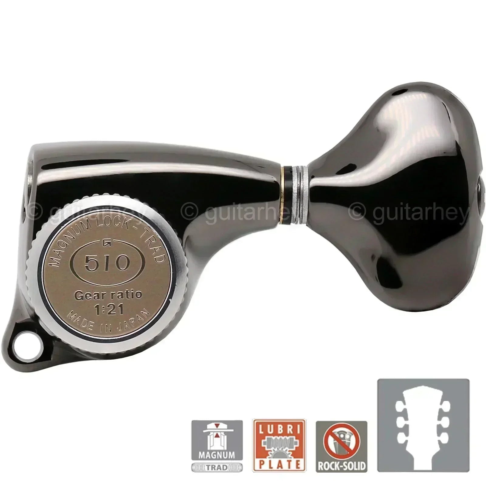 NEW Gotoh SGL510Z-L5 MGT Locking Tuning Keys, 21:1 Ratio Set 3x3 - COSMO BLACK