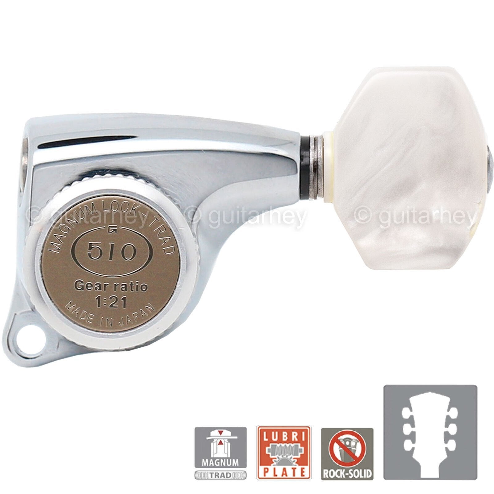 NEW Gotoh SGL510Z-P7 MGT Locking Tuning Keys, 21:1 Ratio Set PEARL 3x3 - CHROME