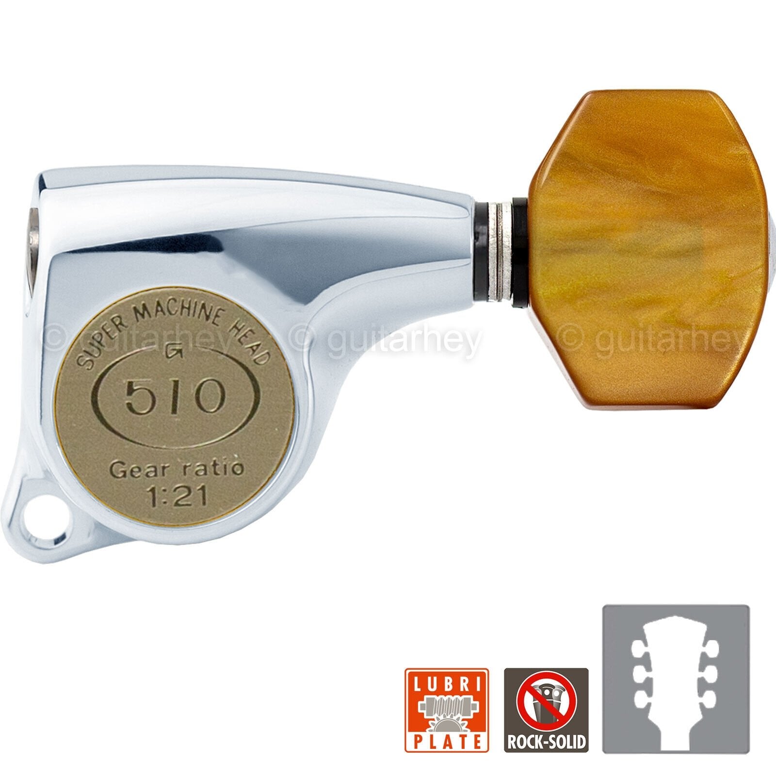 NEW Gotoh SGL510Z-P8 Set Tuners Small AMBER Button 1:21 Gear Ratio, 3x3 - CHROME
