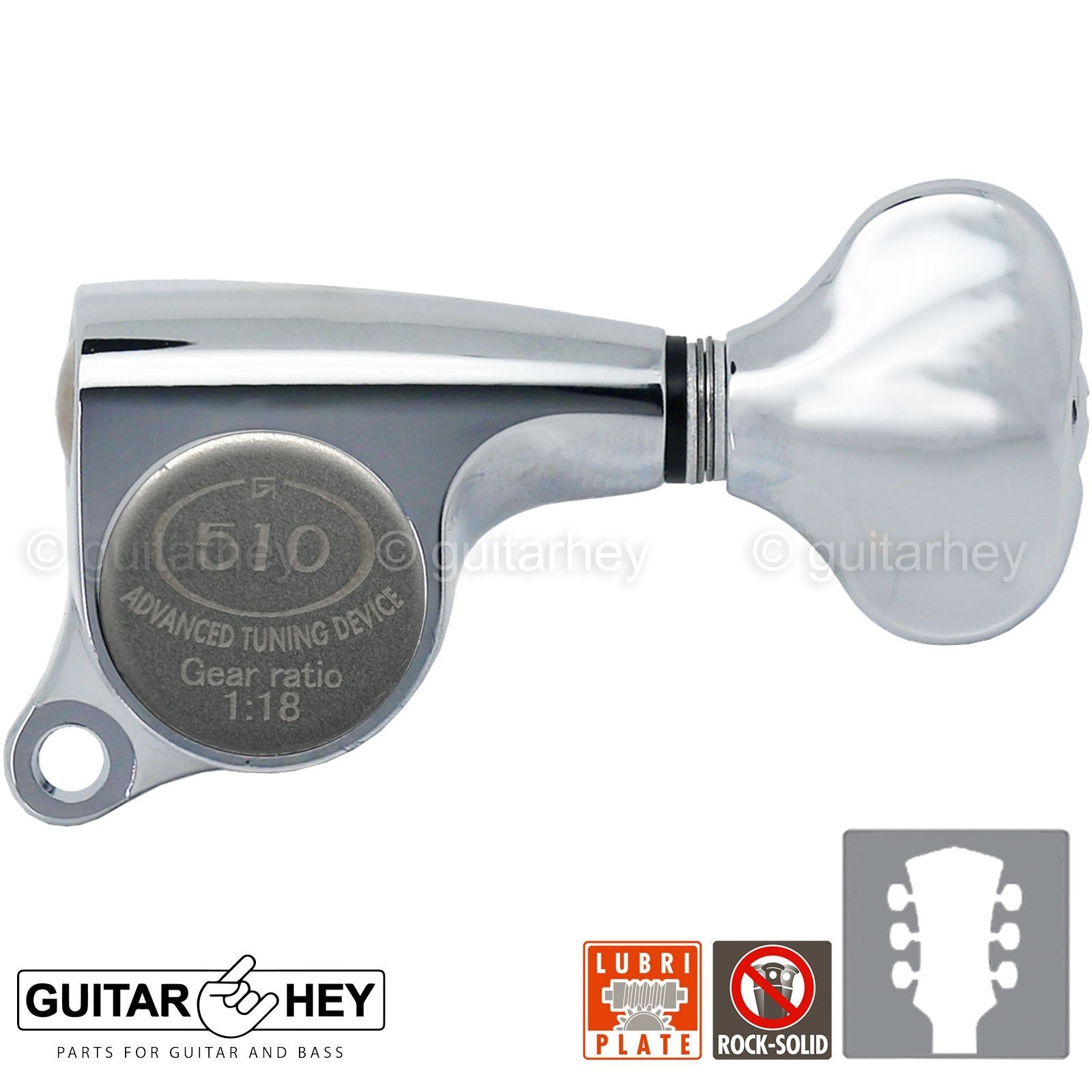 Gotoh 510 top of the line super tuning machine heads feature the accuracy and reliability Gotoh is famous for. They features a 18:1 gear ratio for precise, accurate tuning in a small footprint, and a die-cast enclosure that is permanently sealed and lubricated for years of smooth operation.