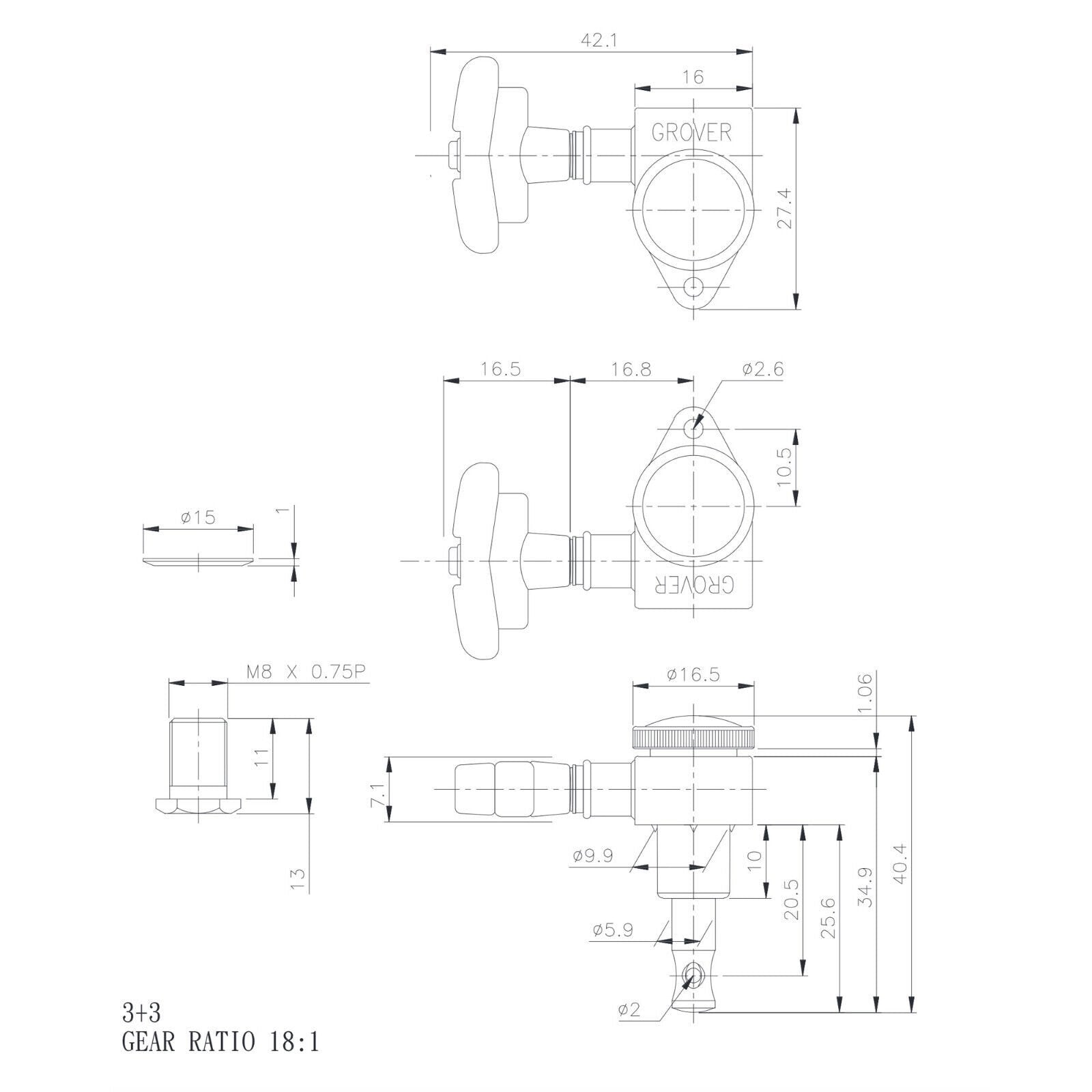 These locking machine heads utilize the famous 18:1 Rotomatic® design with a thumb screw mechanism which locks the string into place. Insert the string through the post hole, wrap around once, then lock by tightening with the thumb screw. Perfect replacement for the most standard machine heads. Includes all mounting hardware.