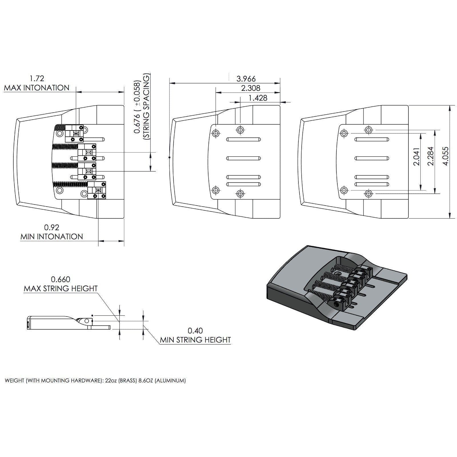 - Innovative micro-adjust saddle design allows for an additional 1/16" [1.5mm] of side-to-side adjustment for even greater string spacing possibilities