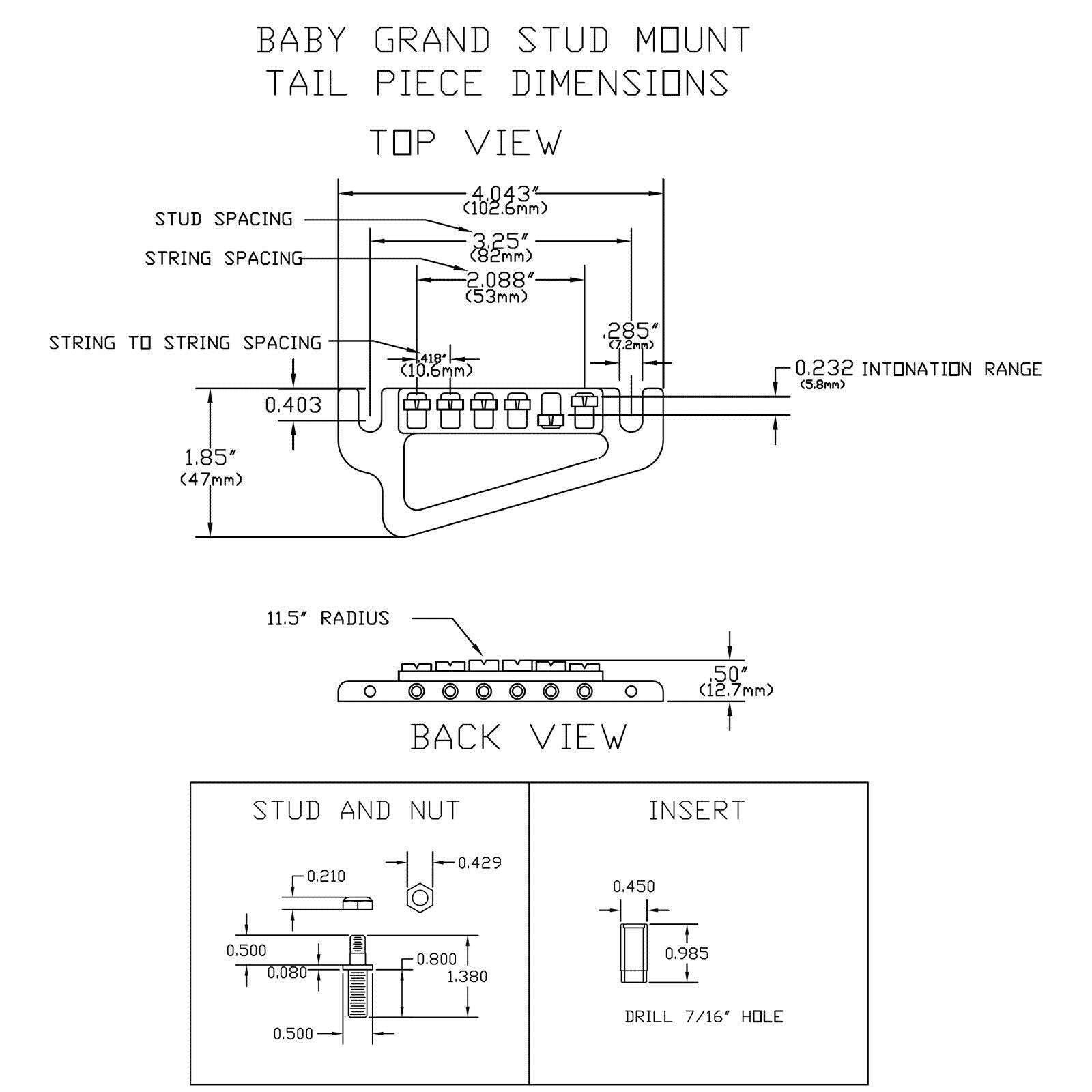 The Baby Grand Guitar Bridge elegantly designed by master guitar luthier Chris Hofscheider, retrofits on Gibson style stud mount guitars (3 1/4'' stud spacing). The guitar was built by Scott French.