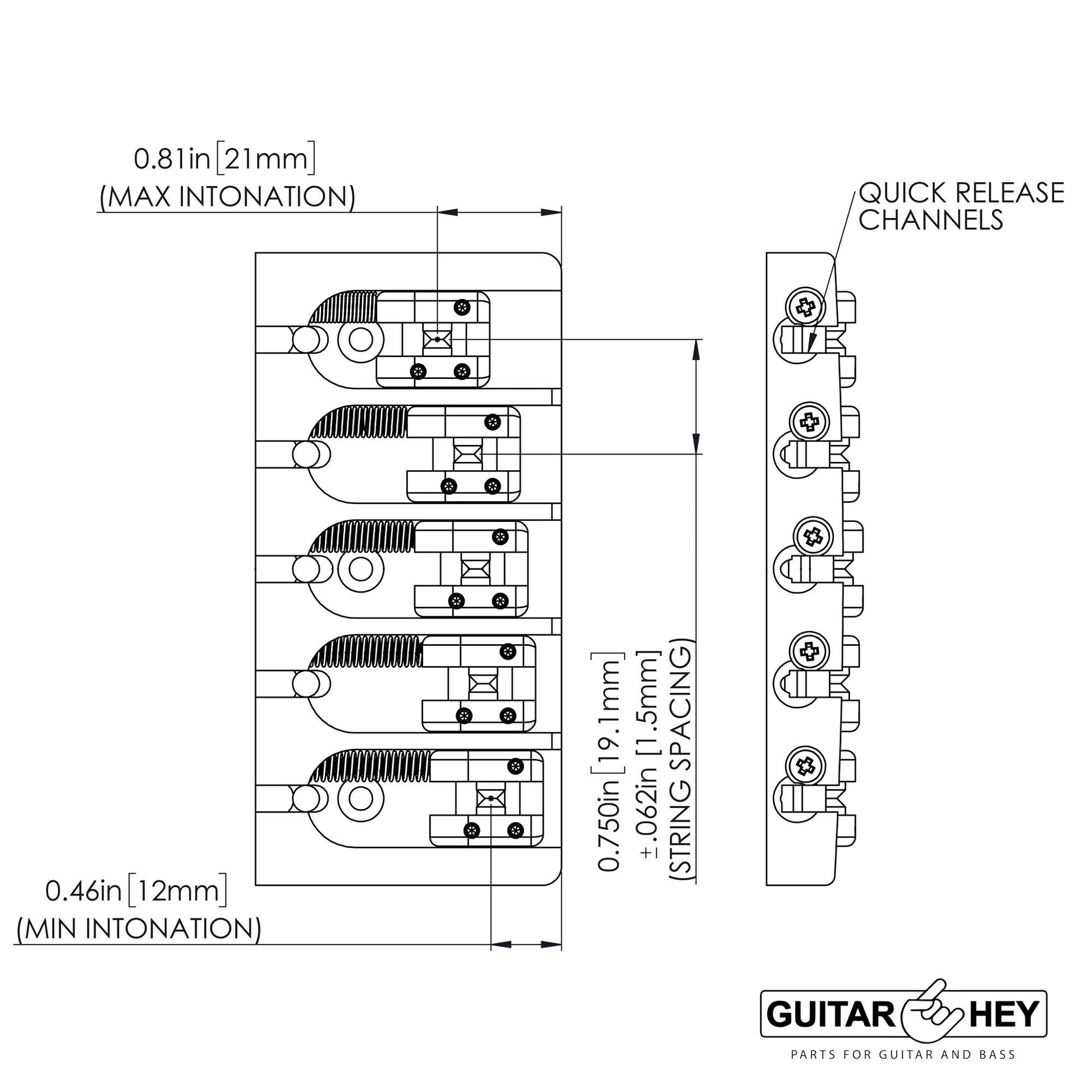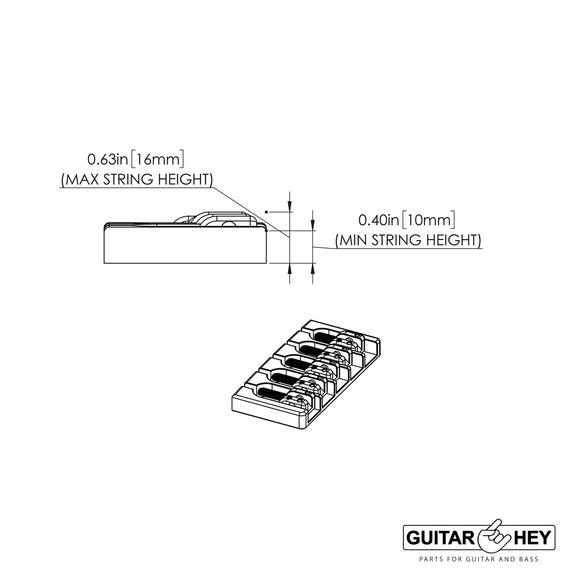 - Innovative micro-adjust saddle design allows for an additional 1/16" [1.5mm] of side-to-side adjustment for even greater string spacing possibilities