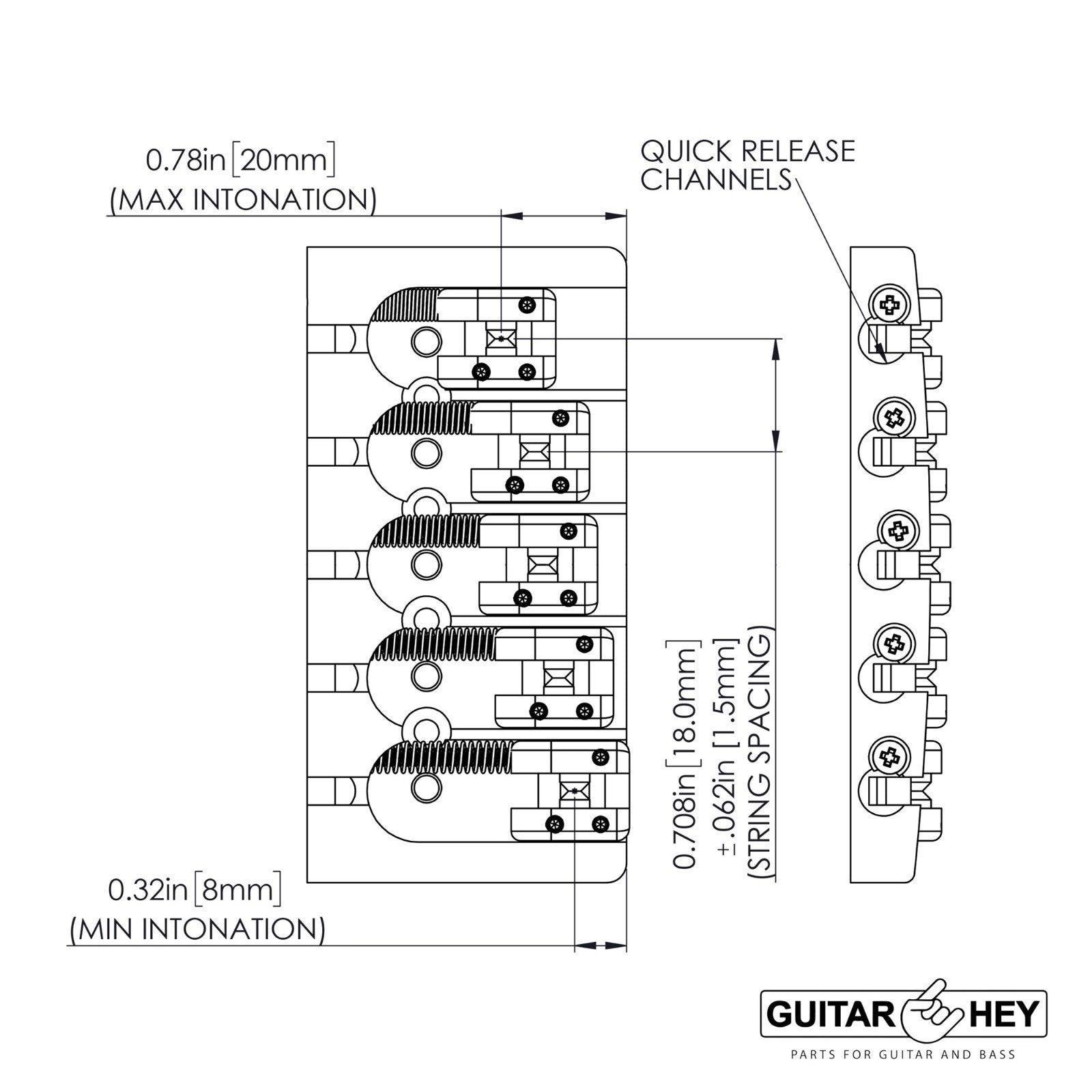- Innovative micro-adjust saddle design allows for an additional 1/16" [1.5mm] of side-to-side adjustment for even greater string spacing possibilities