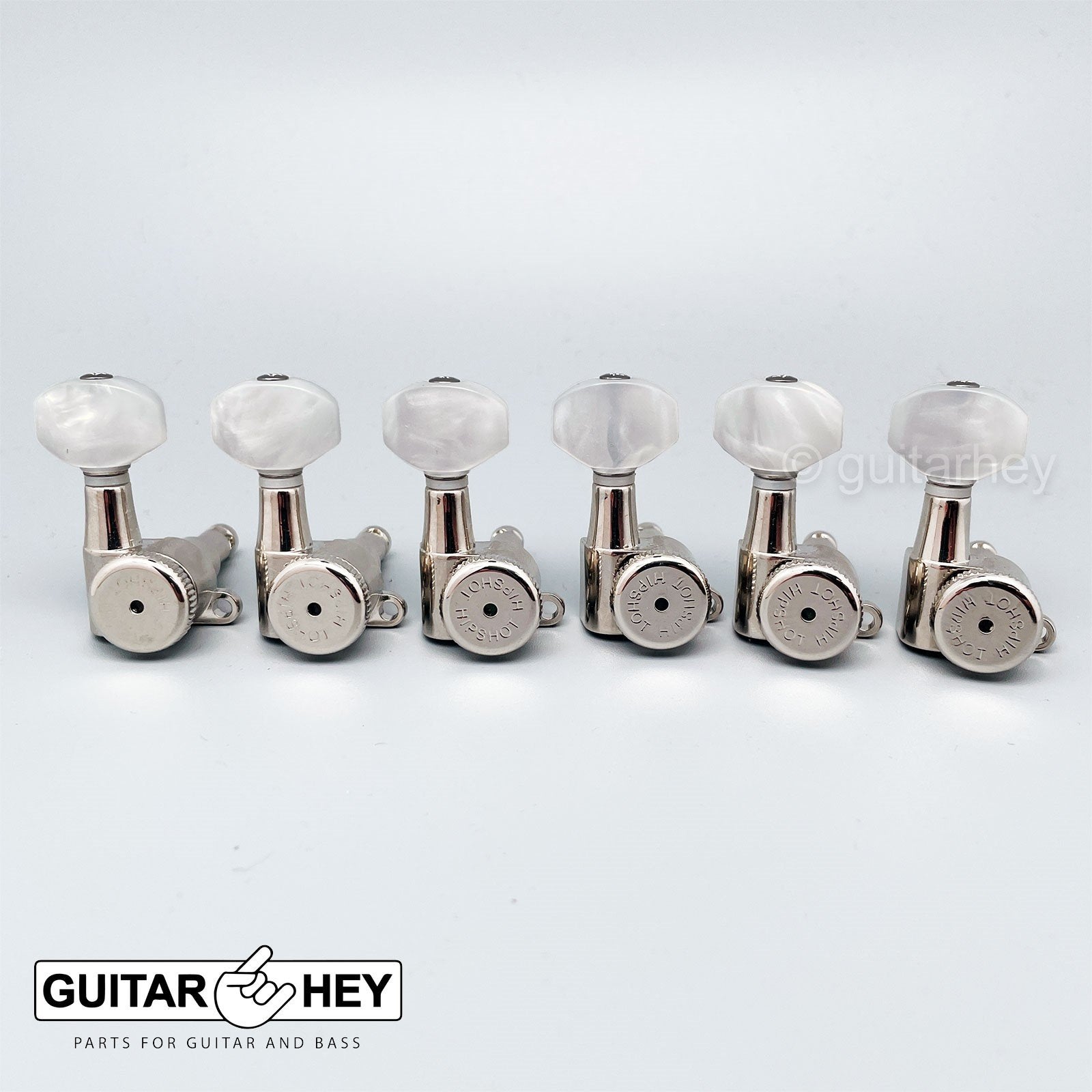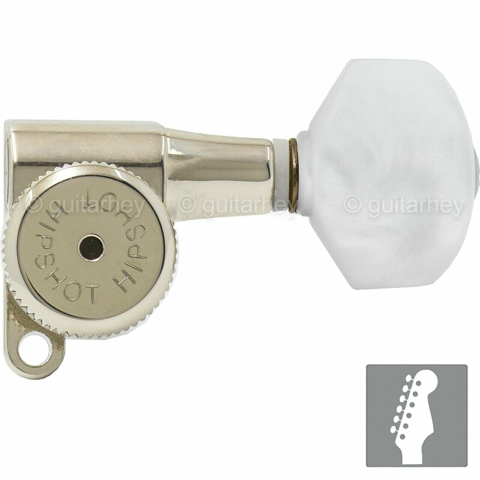 NEW Hipshot 6-in-Line LOCKING Tuners STAGGERED Set w/ HEX-P Buttons - NICKEL