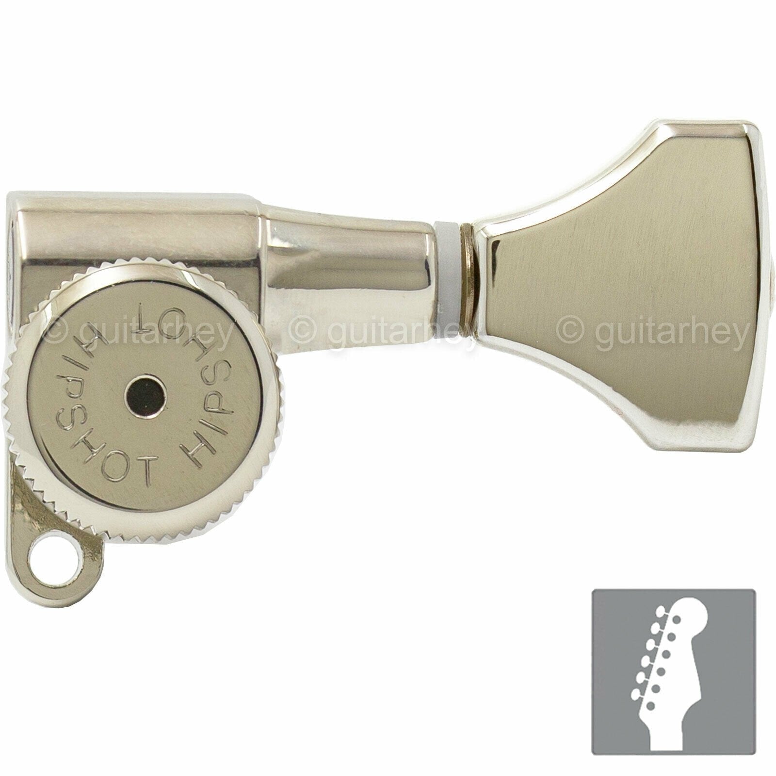 NEW Hipshot 6-in-Line LOCKING Tuners STAGGERED Set w/ HS Buttons - NICKEL