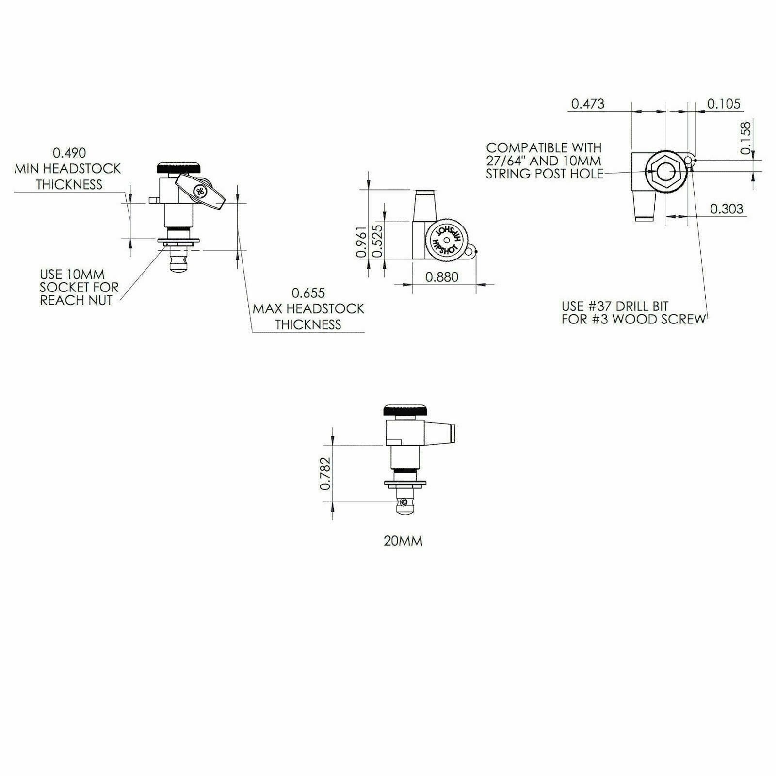 Upgrade your tuners and improve the tuning accuracy and stability with Hipshot's Tuner Upgrade Kit. With the patent pending UMP(Universal Mount Plate) included free in this kit, tuners will install without drilling or screwing your headstock.