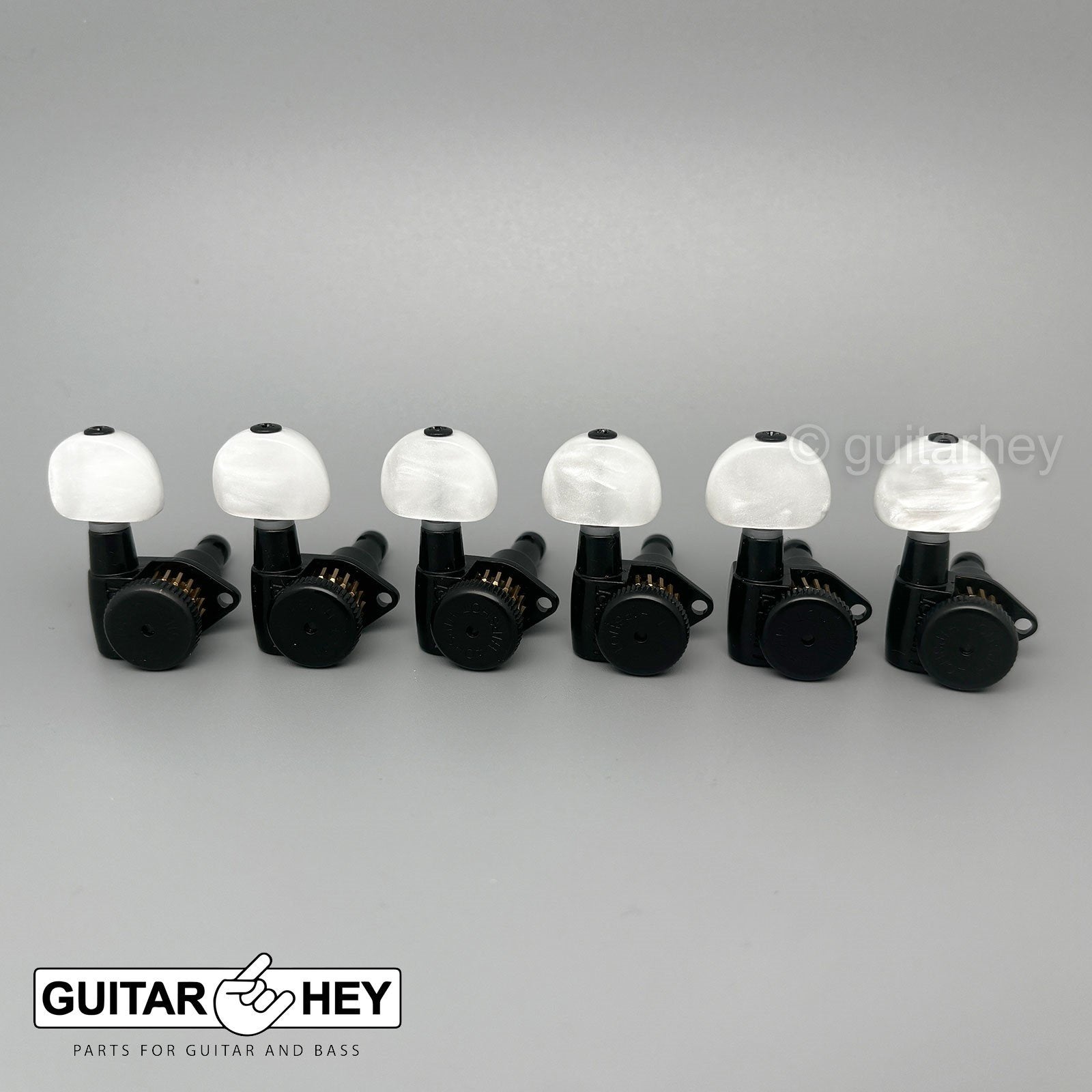 NEW Hipshot 6-in Line Open-Gear Locking Non-Staggered PEARL Moon Buttons - BLACK