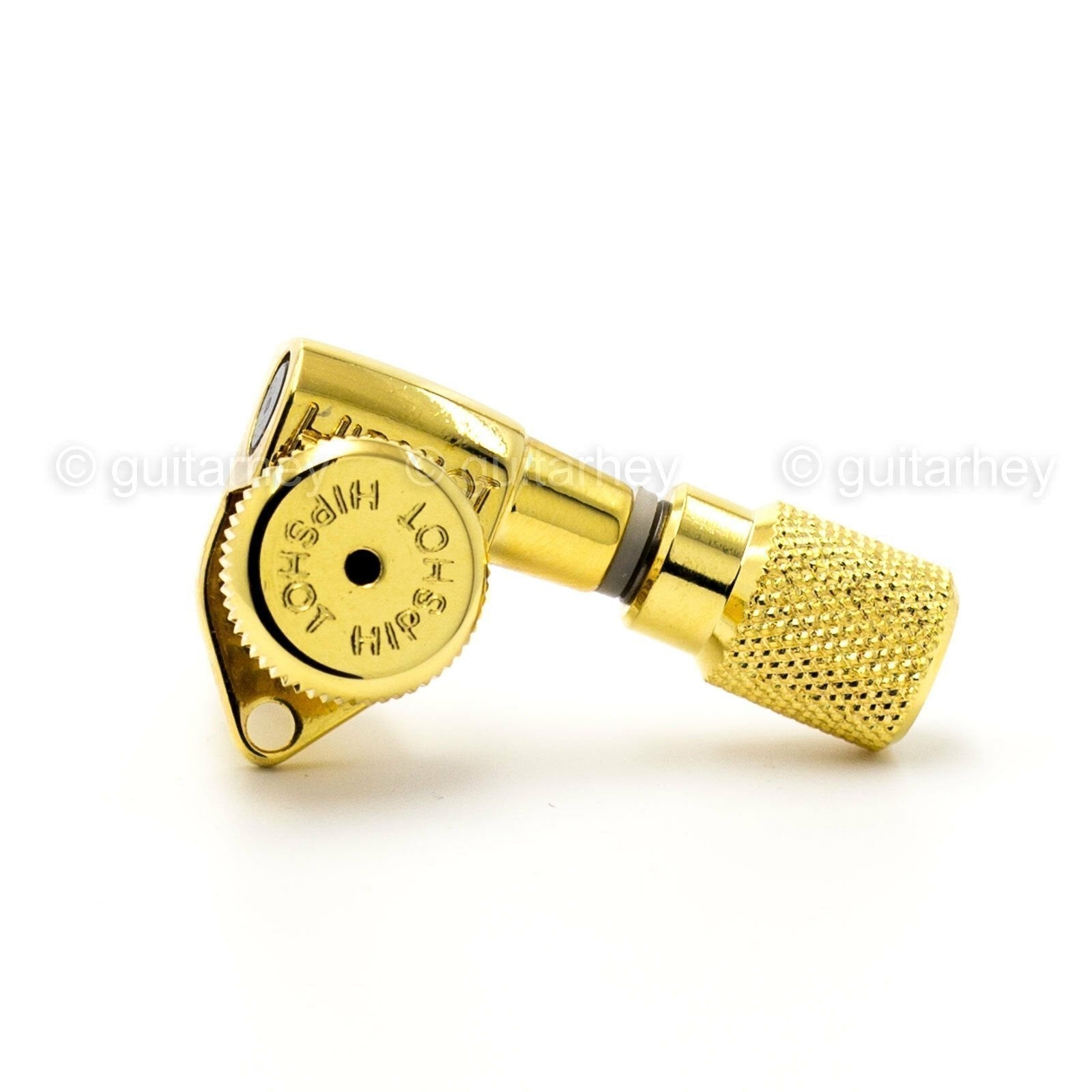 NEW Hipshot 6-in-Line STAGGERED Grip-Locking Open-Gear KNURLED Buttons - GOLD