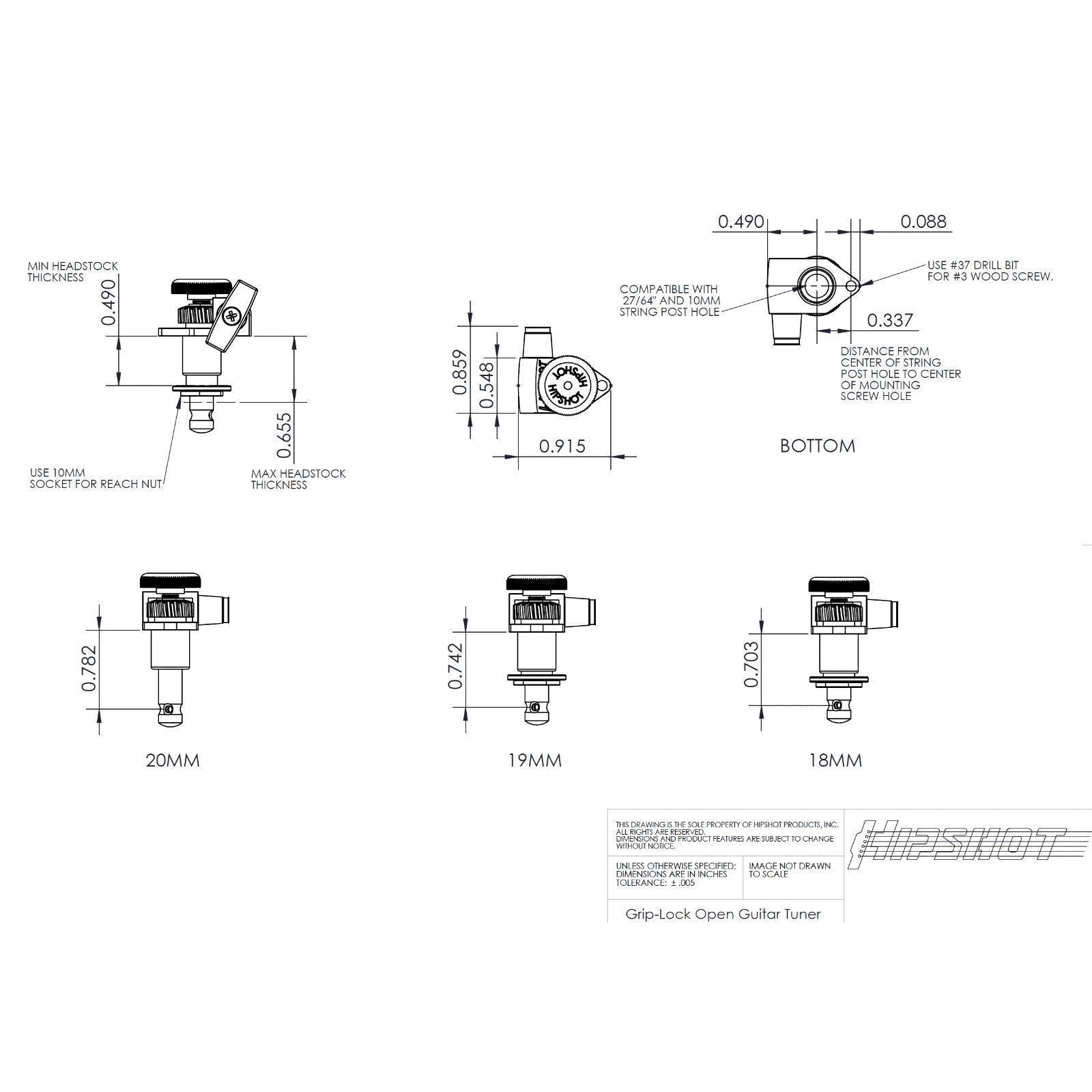 Hipshot 6 in line STAGGERED Guitar Tuner Upgrade Kit Grip-Lock Open w/ UMP Plates