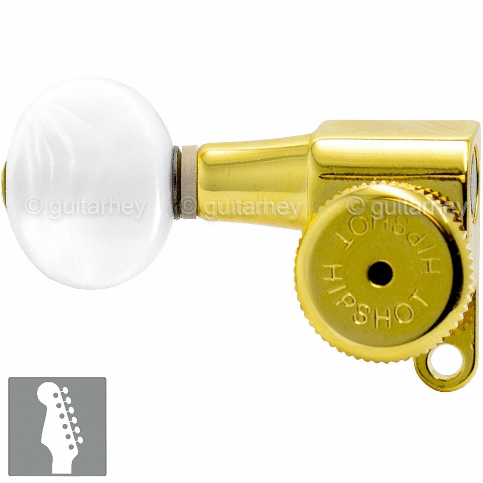 NEW Hipshot 6-In-Line STAGGERED w/ OVAL PEARL Buttons Locking TREBLE SIDE - GOLD