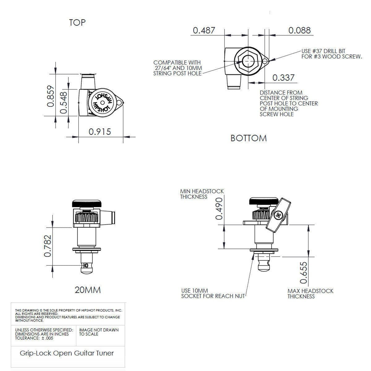 Hipshot Grip-Lock Upgrade Open-Gear 6 in line STAGGERED w/ UMP Kit - LEFT-HANDED