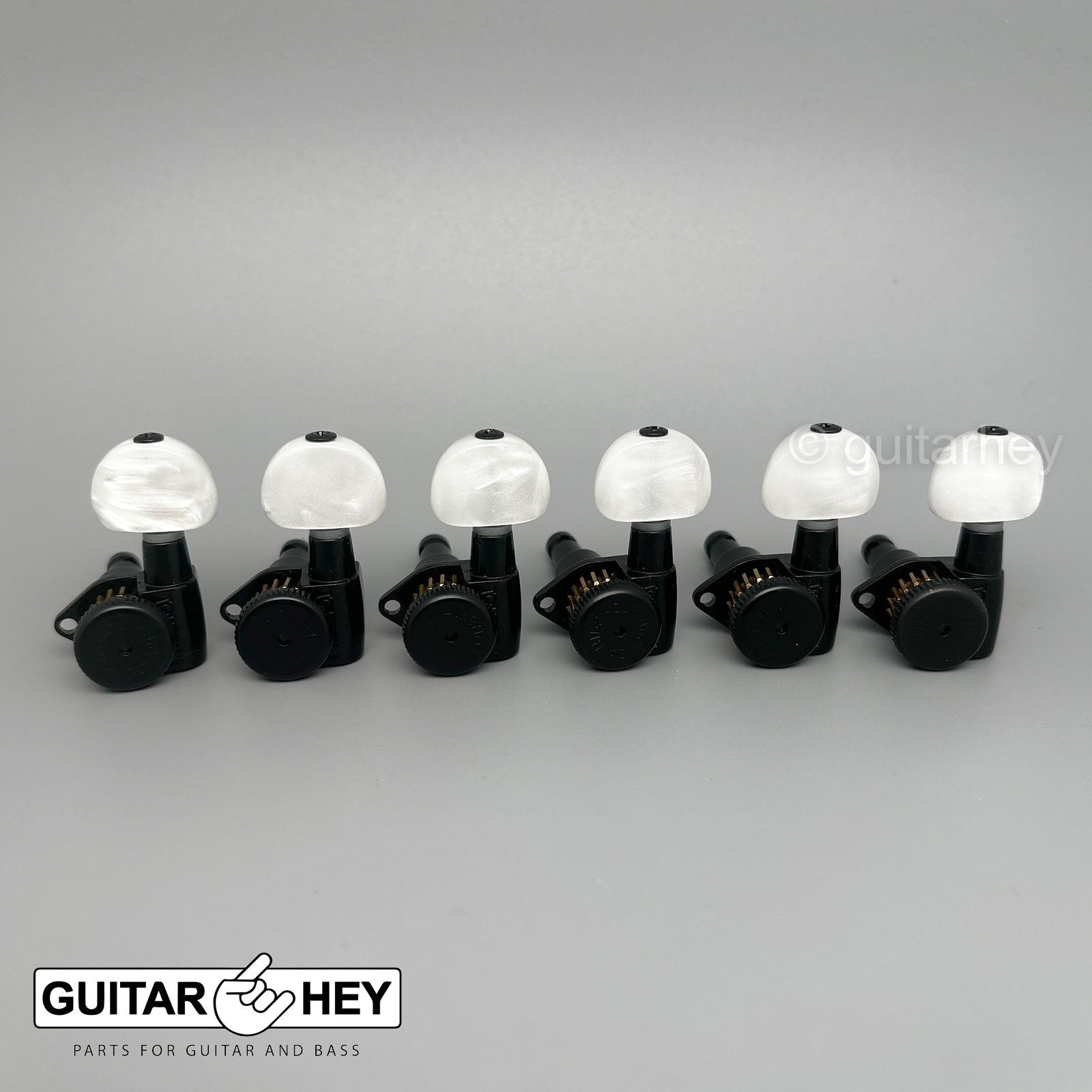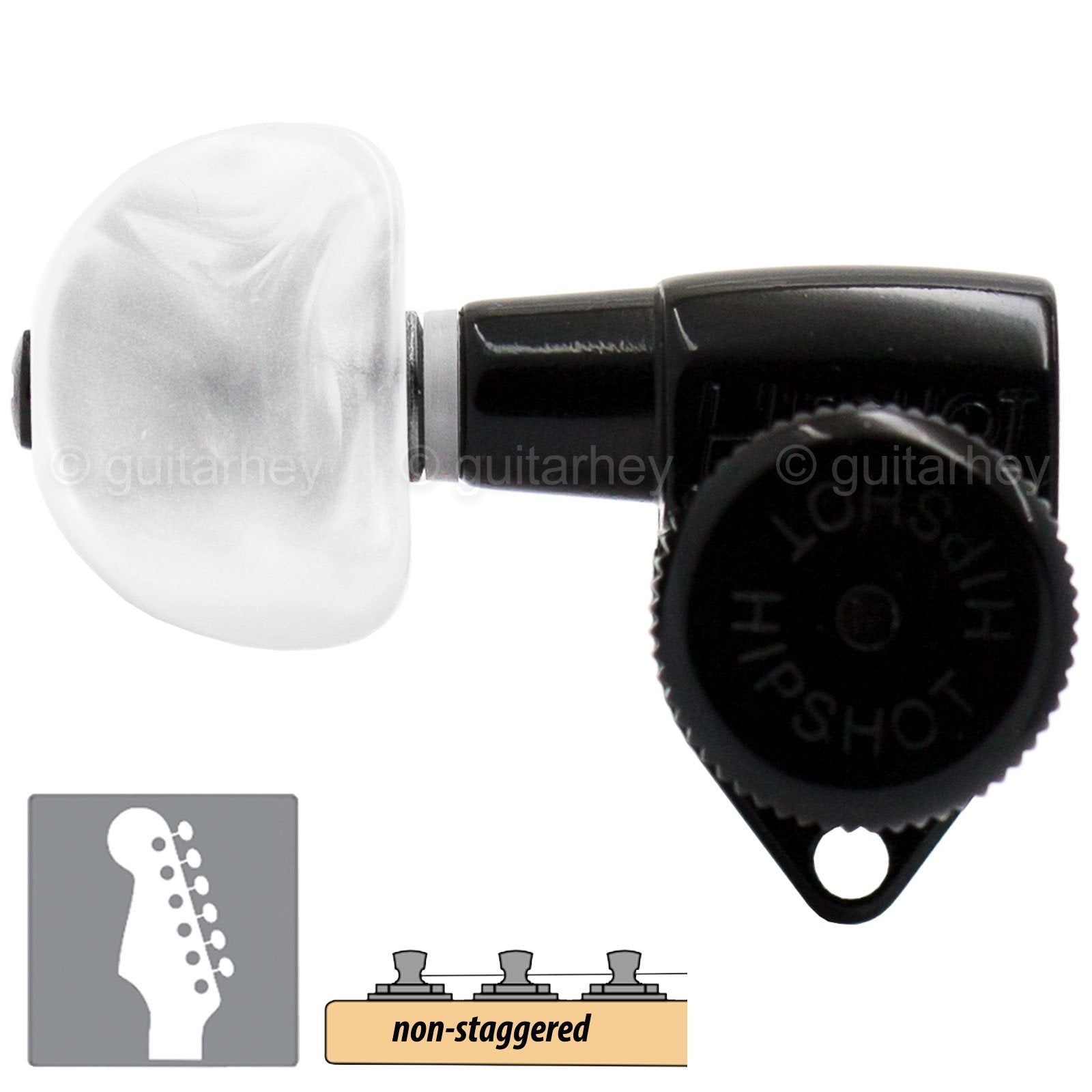NEW Hipshot 6 inline Non-Staggered Locking LEFT-HANDED PEARLOID Buttons - BLACK