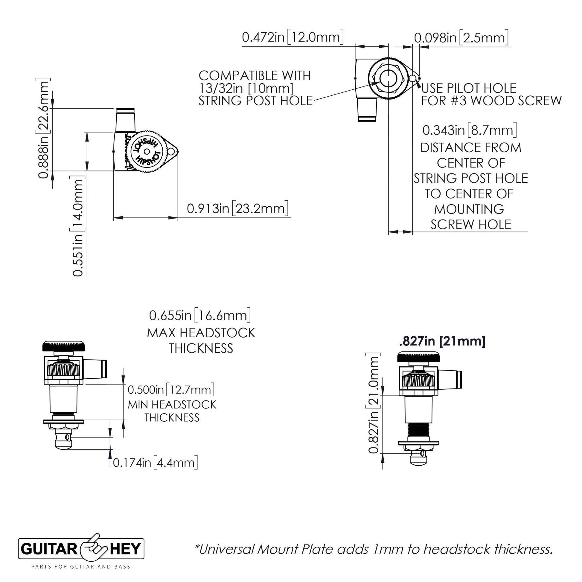 - Included UMP (Universal Mount Plate) for 6 Inline headstocks. No drilling or special tools required