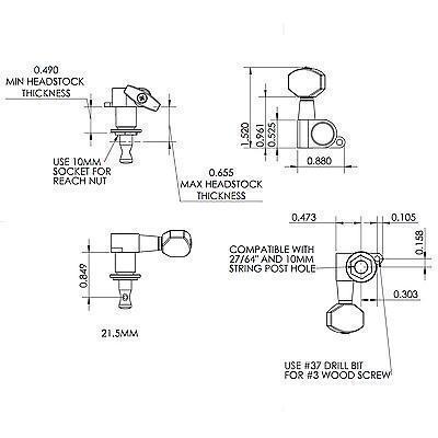 Upgrade your tuners and improve the tuning accuracy and stability of your 3 + 3 headstock guitar with Hipshot's Tuner Upgrade Kit. With the patent pending UMP(Universal Mount Plate) included free in this kit, tuners will install without drilling or screwing your headstock.