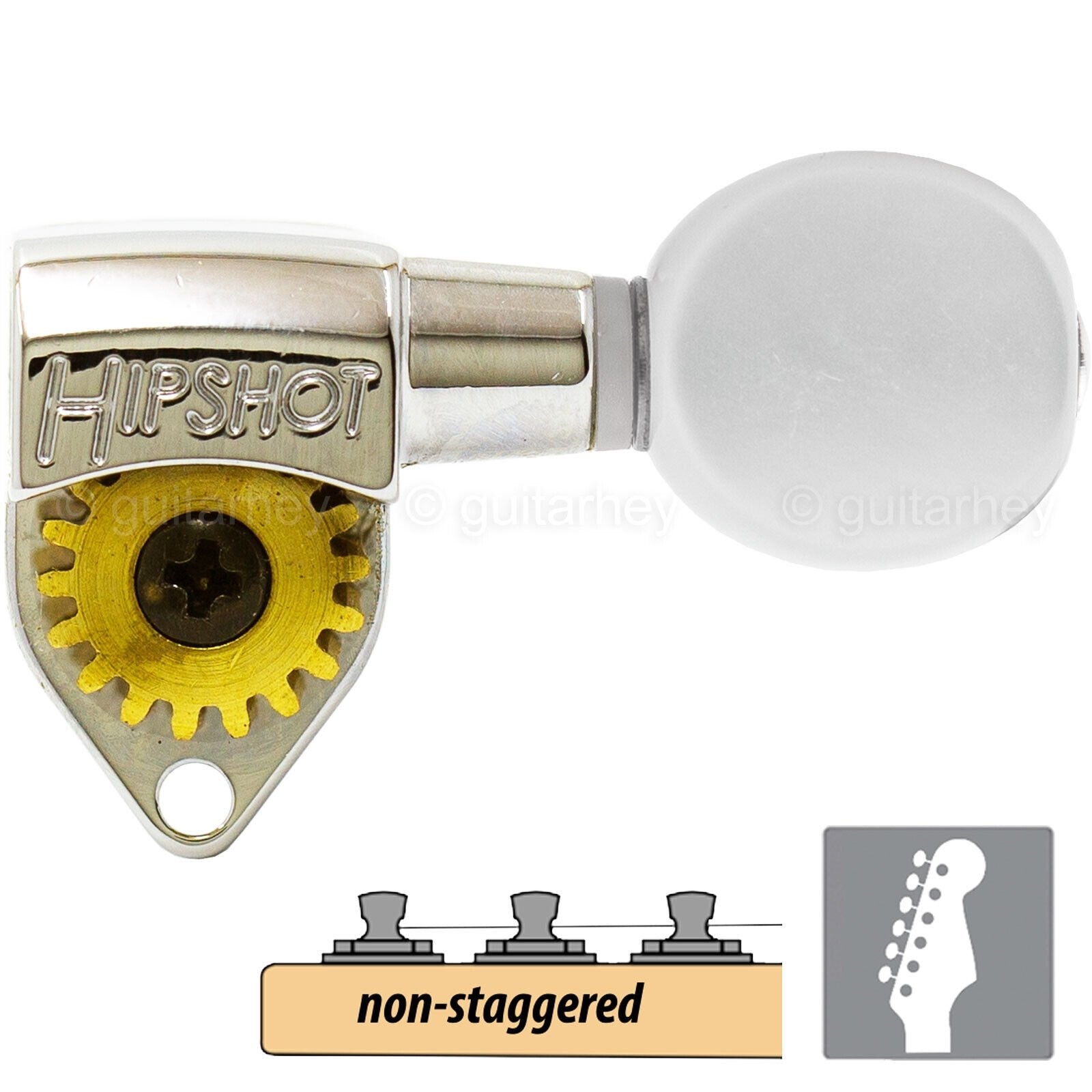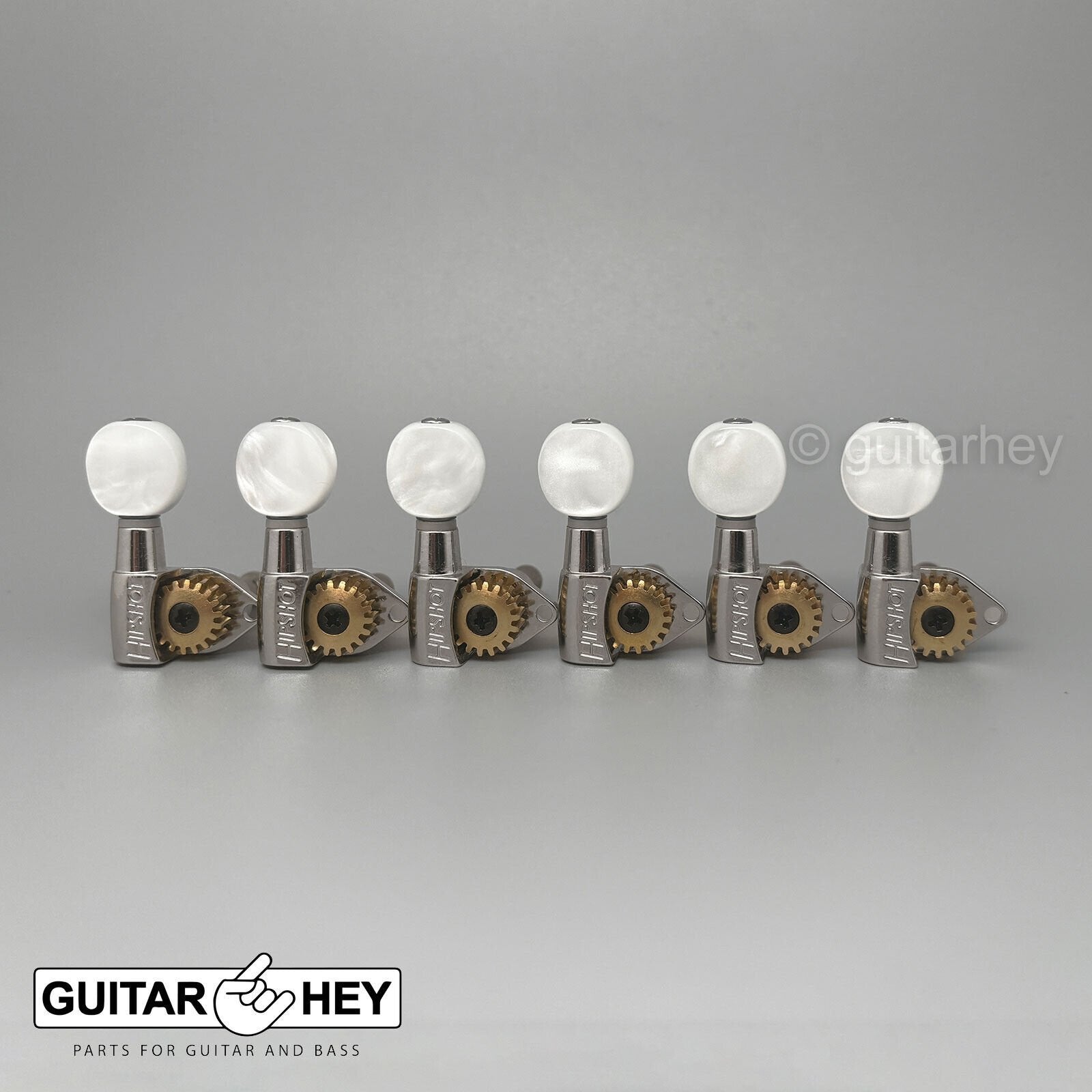 NEW Hipshot Classic 6 in Line Non-Staggered Open-Gear PEARLOID Buttons NICKEL