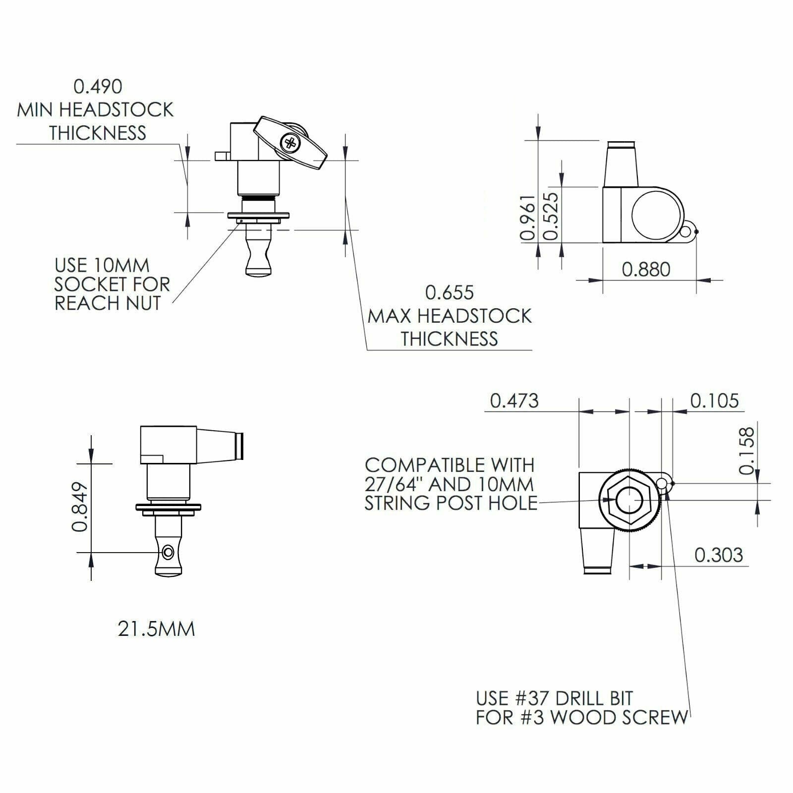 NEW Hipshot Classic Closed-Gear L3+R3 Mini Tuners Set w/ UMP Plates 3x3 - CHROME
