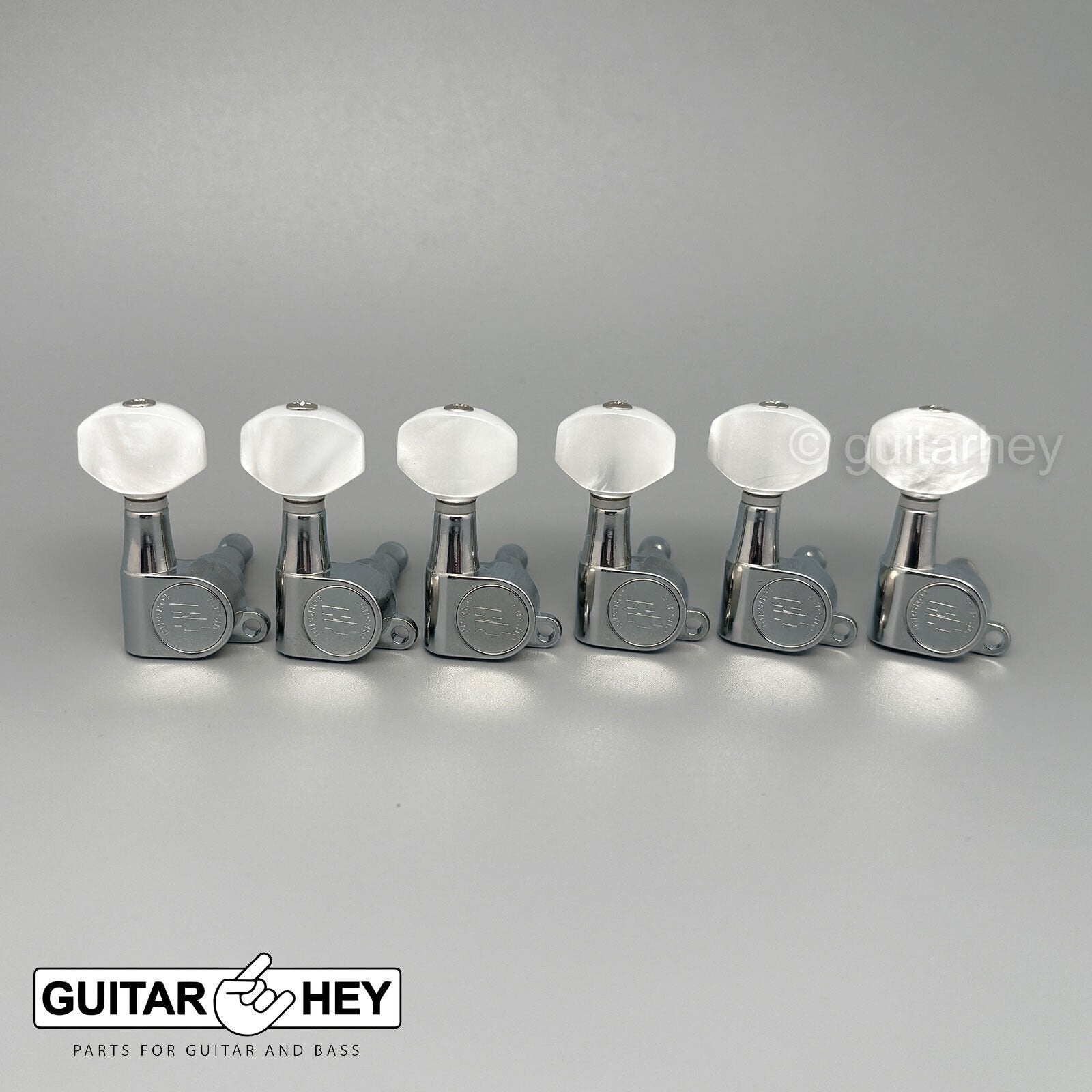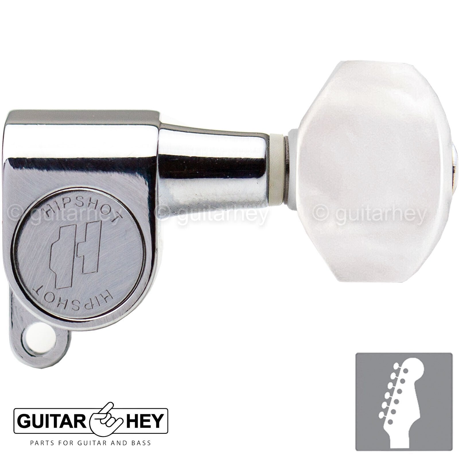 NEW Hipshot Classic Mini Tuners 6 in line STAGGERED w/ PEARL Buttons - CHROME