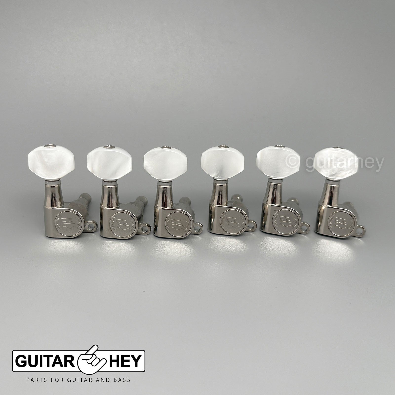 NEW Hipshot Classic Mini Tuners 6 in line STAGGERED w/ PEARL Buttons - NICKEL
