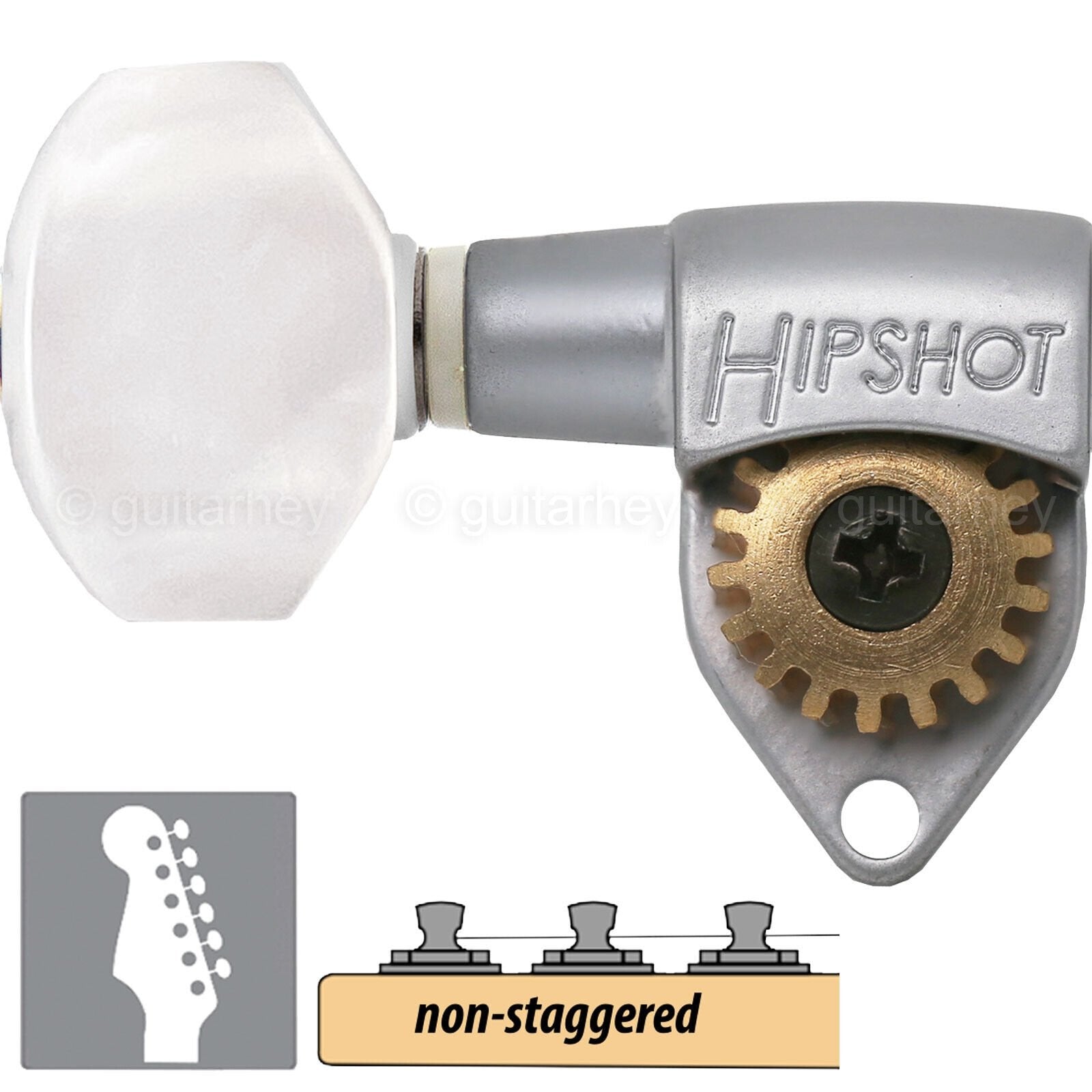 NEW Hipshot Classic Open-Gear 6 in line Non-Staggered PEARL LEFT HANDED, SATIN