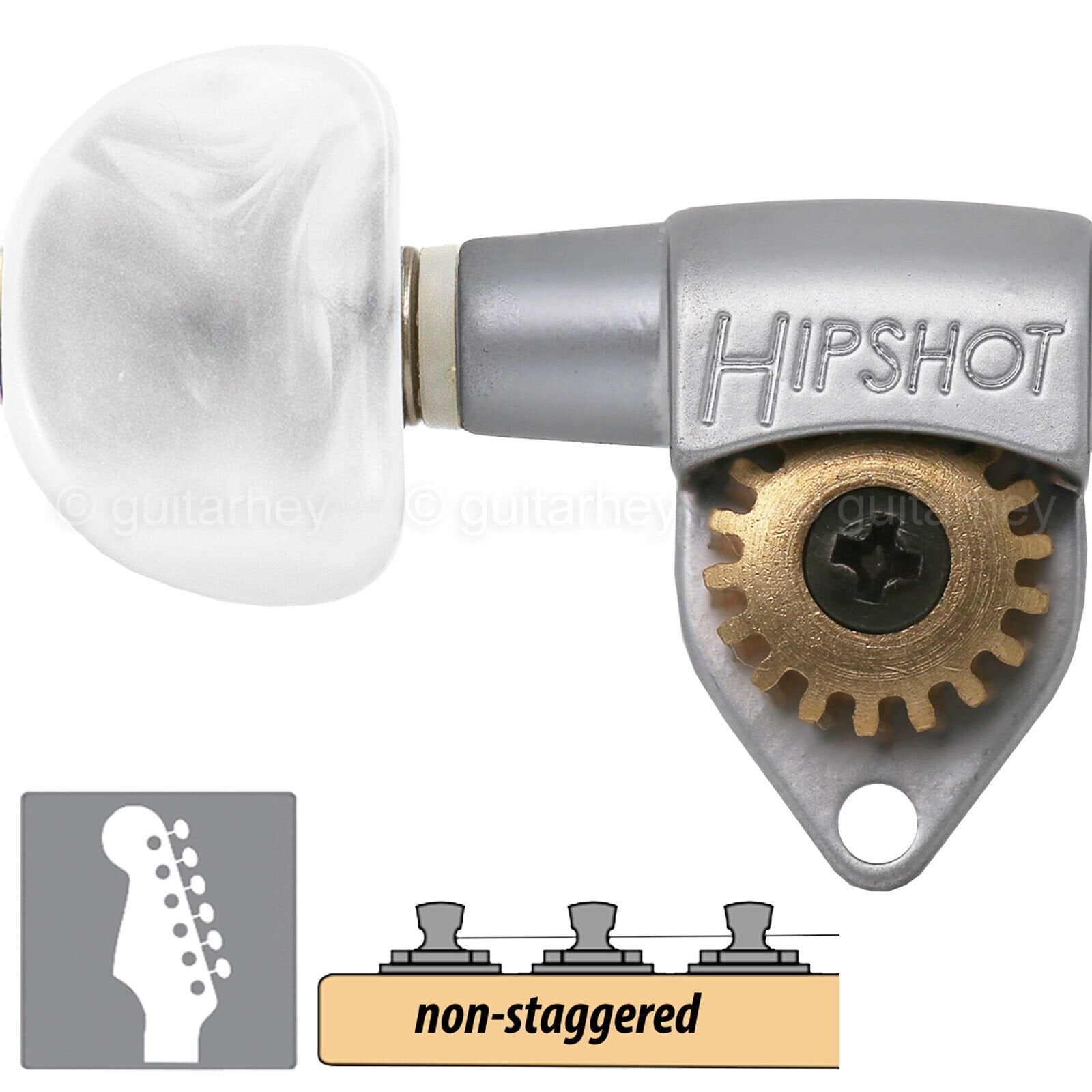 NEW Hipshot Classic Open-Gear 6 in line Non-Staggered Pearloid LEFT HANDED SATIN